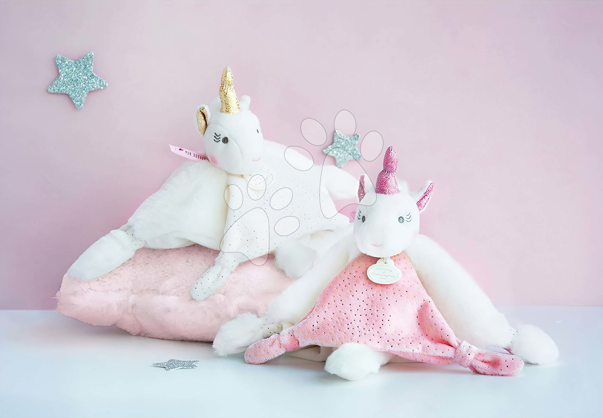 Plyšový jednorožec k mazlení Unicorn Lucie la Licorne Doudou et Compagnie bílý 25 cm v dárkovém balení od 0 měsíců
