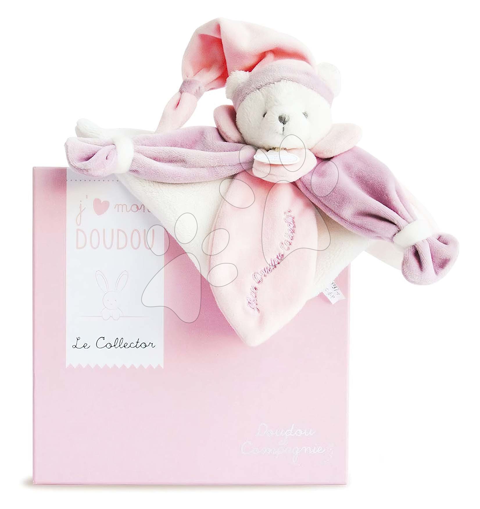 Plyšový medvídek na mazlení Collector Doudou et Compagnie růžový 24 cm v dárkovém balení od 0 měsíců