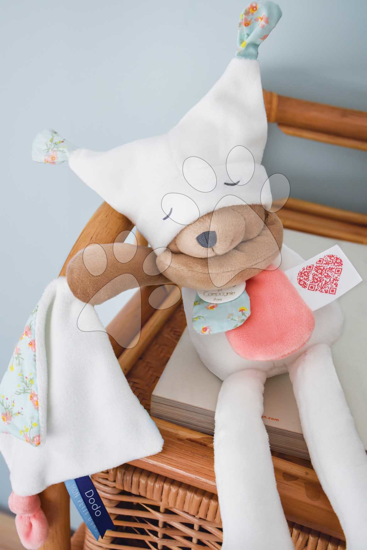Plyšový medvídek s hadříkem Plush Bear White Doudou et Compagnie s QR kódem na pohádky bílý 35 cm od 0 měsíců