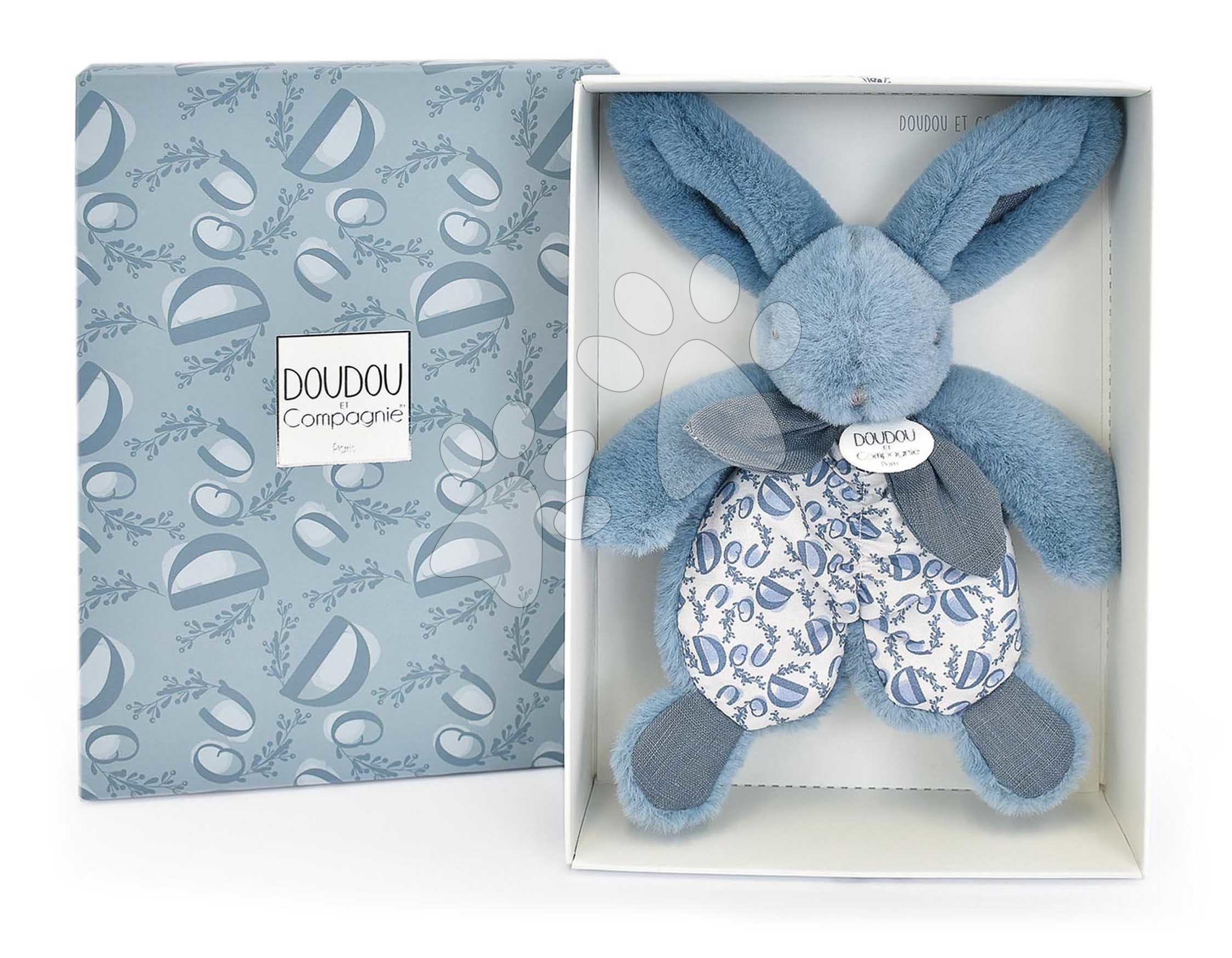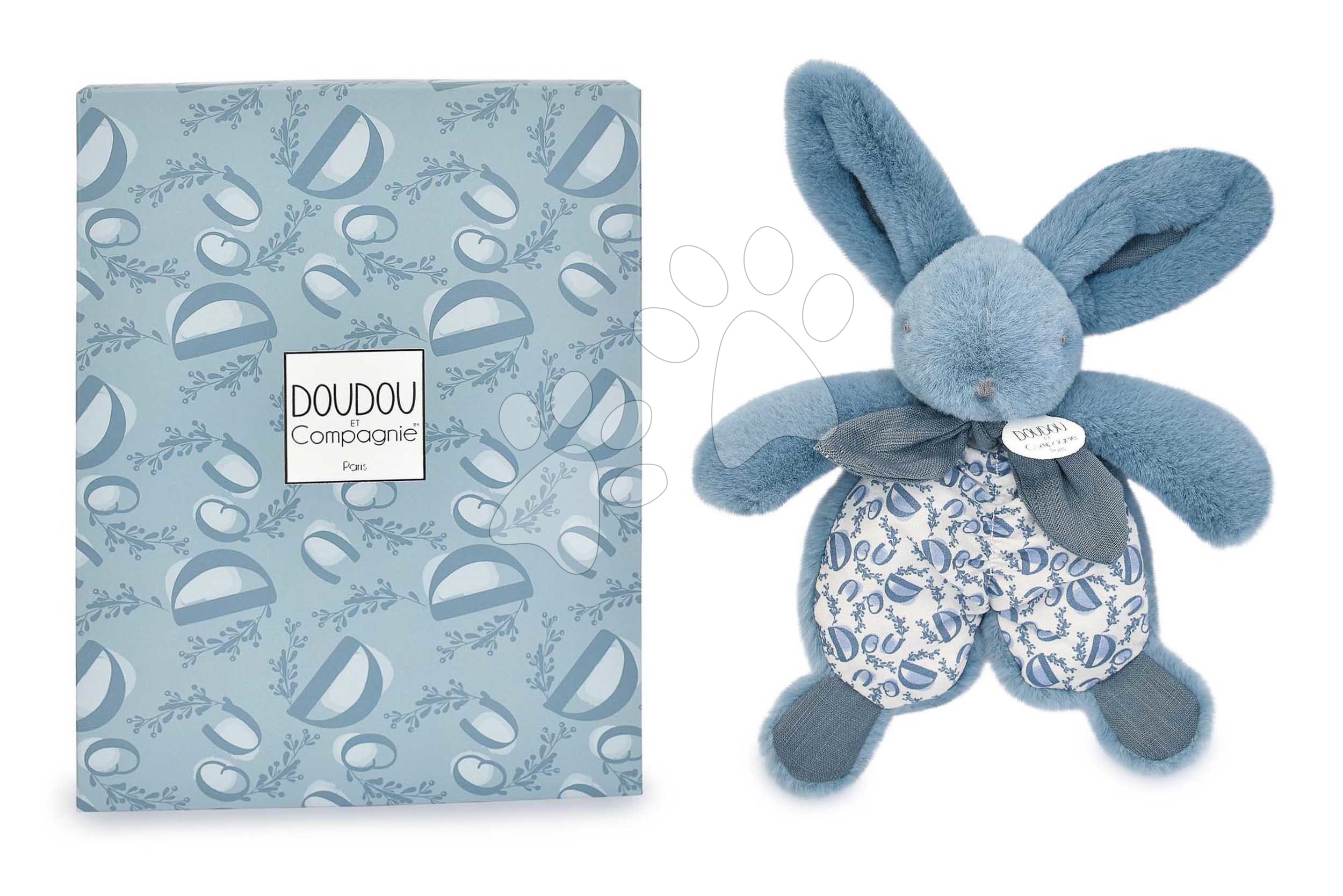 Plyšový zajíček na mazlení Bunny Comforter Blue Doudou et Compagnie v dárkovém balení modrý 18 cm od 0 měsíců