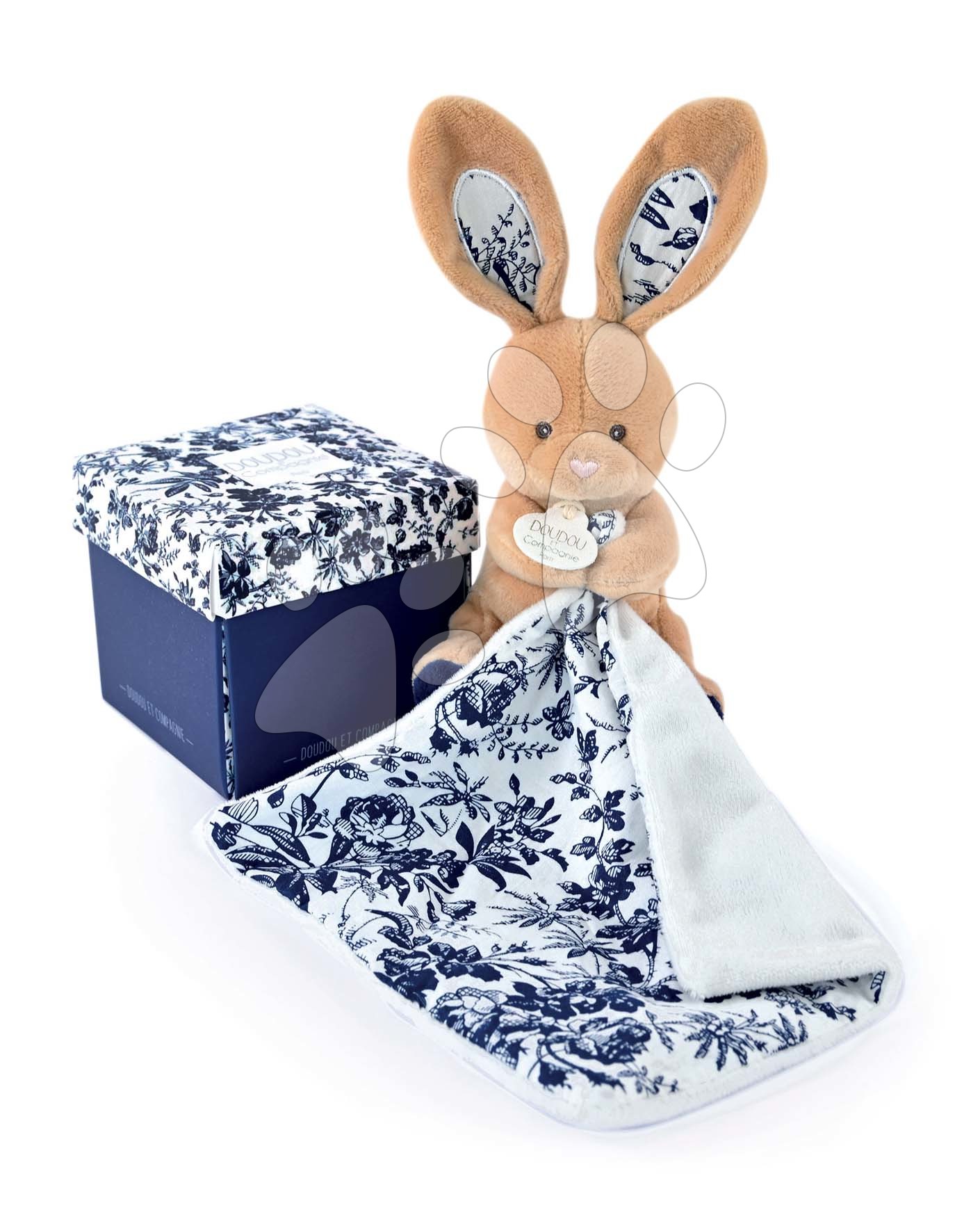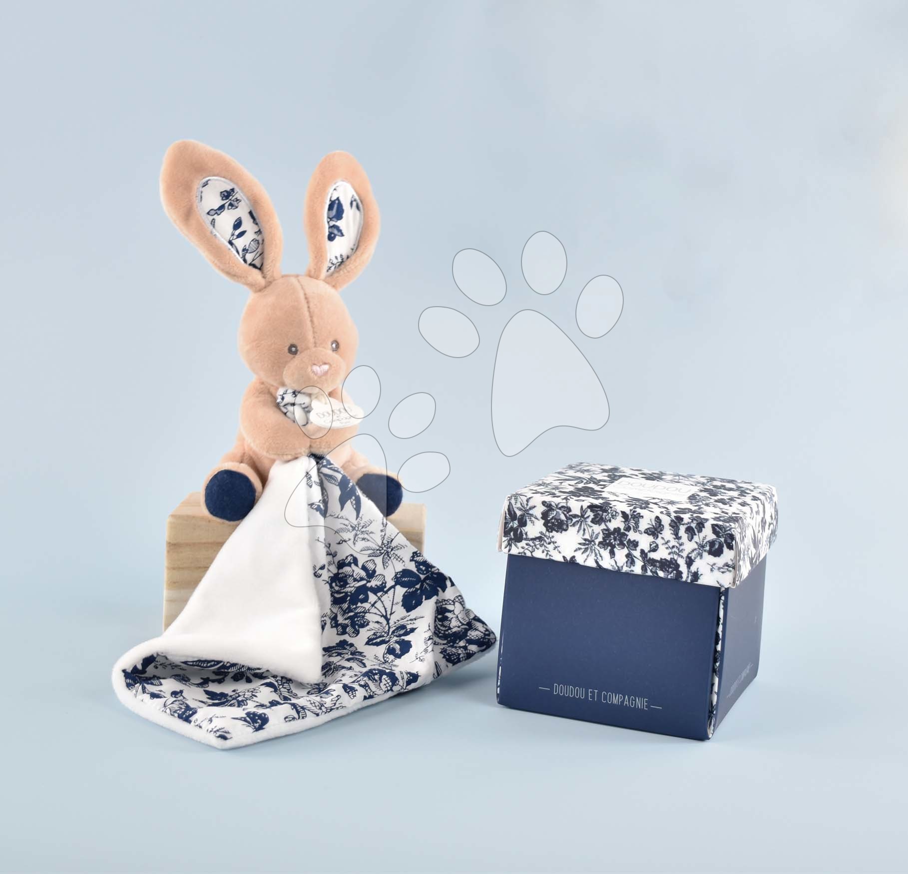 Plyšový zajíček na mazlení Bunny Navy Boh’aime Doudou et Compagnie modrý 12 cm v dárkovém balení od 0 měsíců