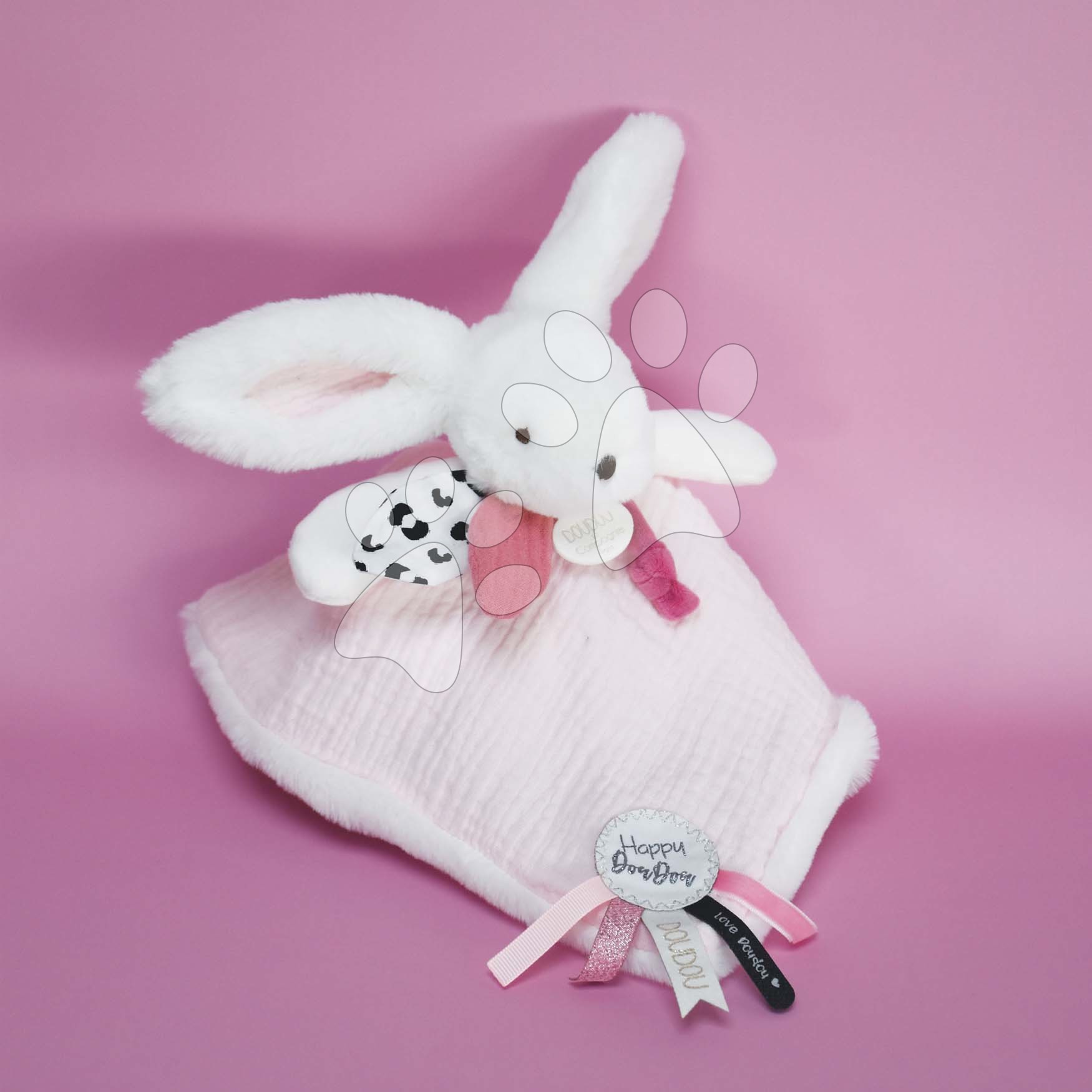 Plyšový zajíček na mazlení Happy Blush Doudou et Compagnie růžový 25 cm v dárkovém balení od 0 měsíců
