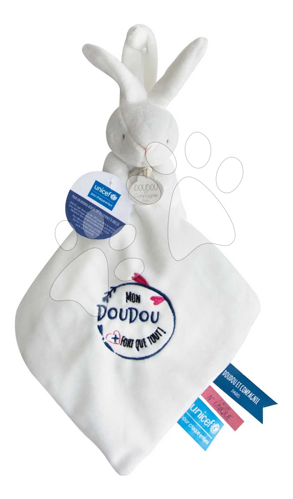 plyšový zajíček Doudou et Compagnie pochází z kolekce UNICEF a část zisku z prodeje poputuje na podporu práv dětí po celém světě.