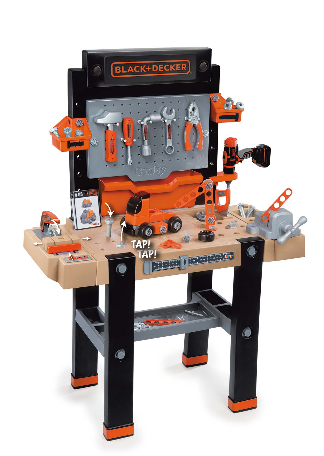 Pracovní dílna elektronická Bricolo Ultimate Workbench Black&Decker Smoby s mechanickou vrtačkou s 95 doplňky 103 cm