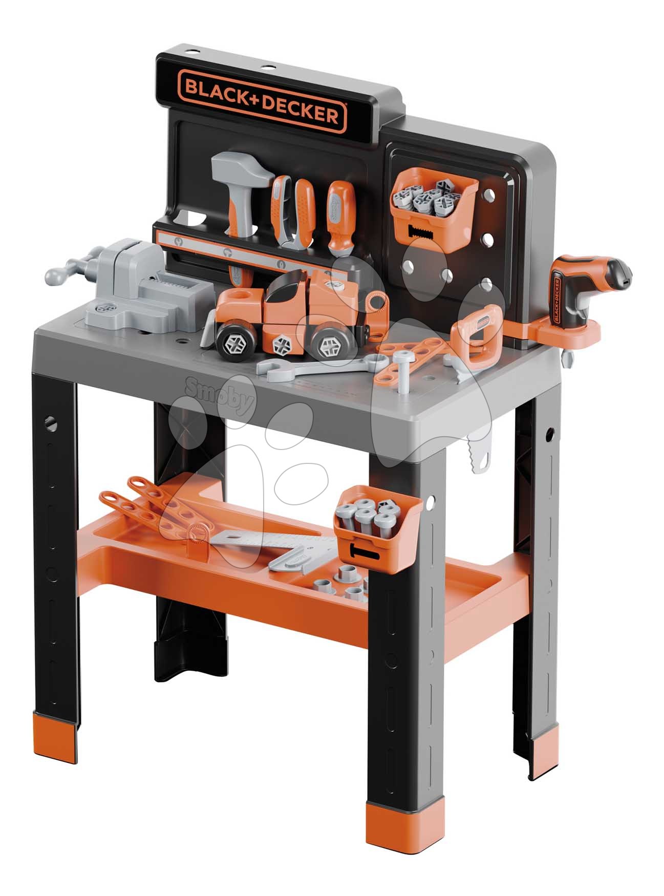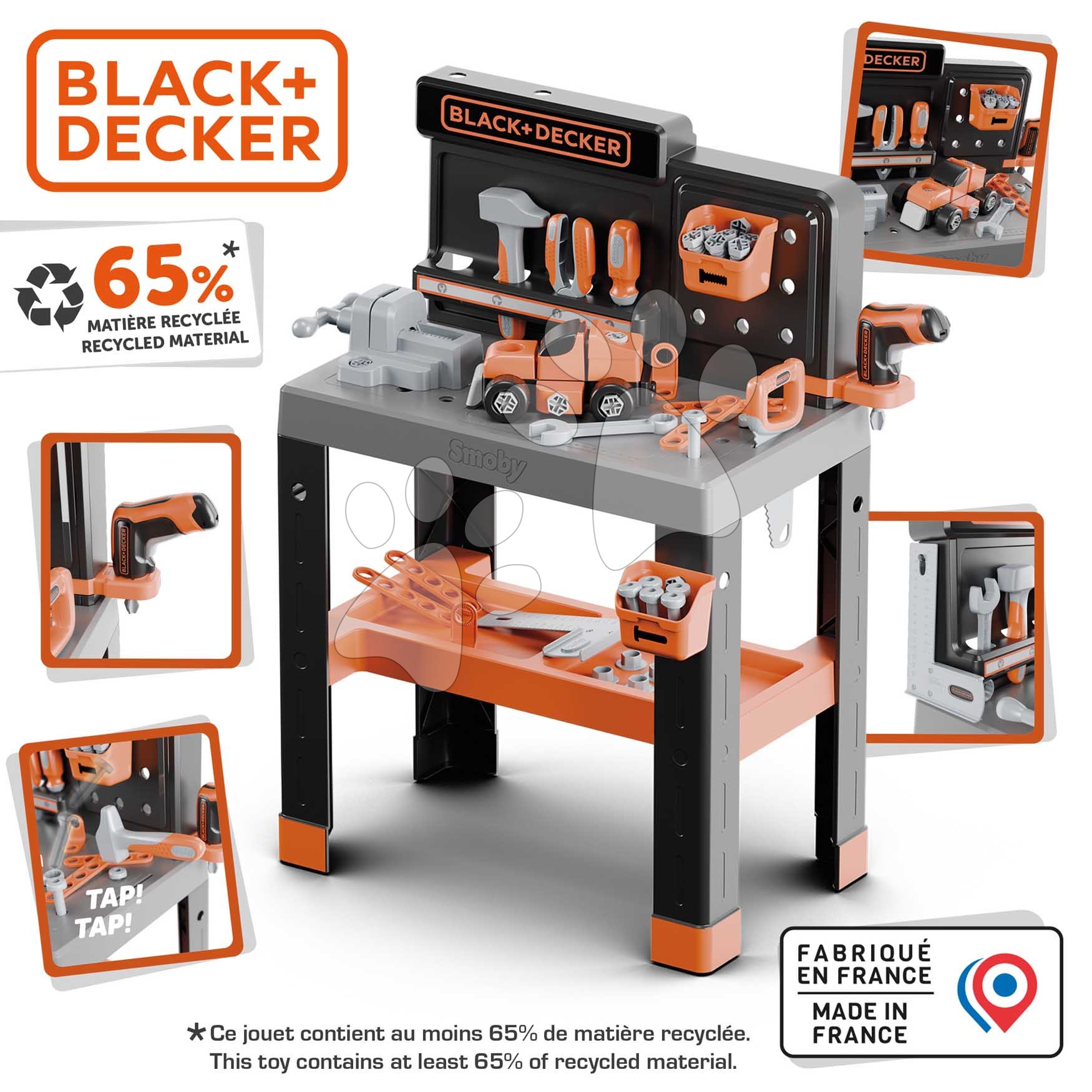 Pracovní dílna se skládacím autíčkem Bricolo Pro Workbench Black&Decker Smoby s mechanickou vrtačkou a nářadím s montážními dílky 78 doplňků výška 75 cm