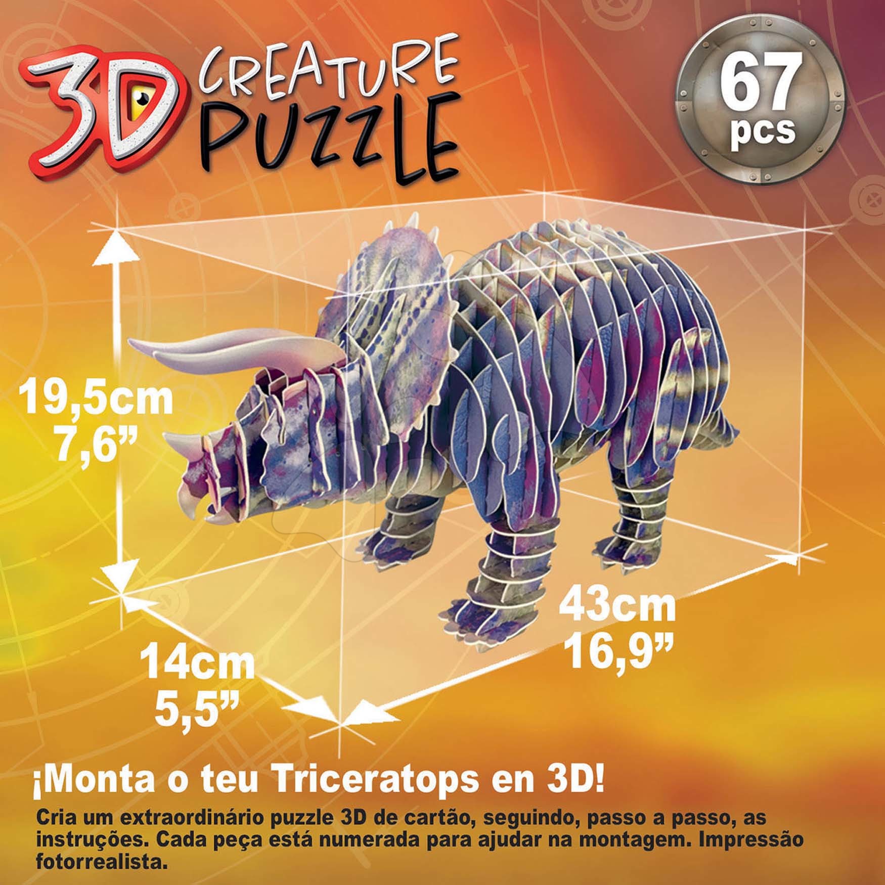 Objevujte kvalitní 3D puzzle Educa! Puzzle dinosaurus Triceratops 3D Creature obsahuje 67 dílků a potěší děti i dospělé.