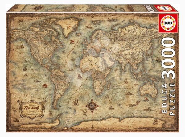 puzzle pro náročné milovníky od španělského výrobce Educa. 3000dílné puzzle s historickým motivem Mapy světa.
