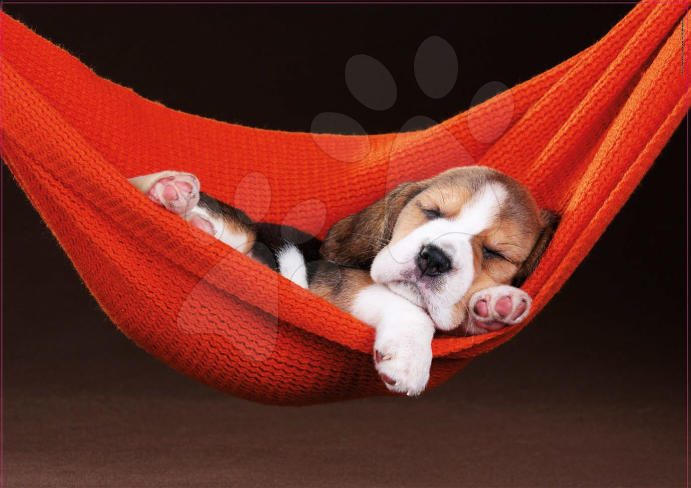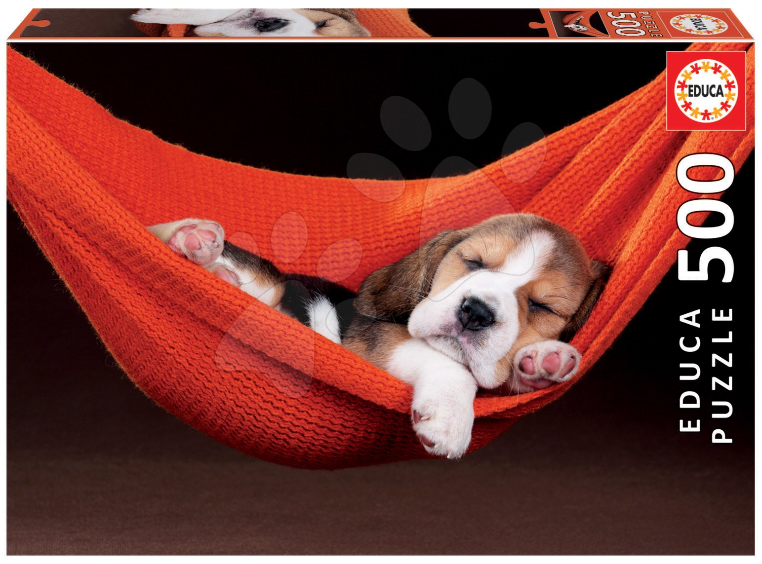 Kvalitní puzzle pro milovníky zvířat. 500dílné puzzle Sleeping in the hammock od Educa s motivem štěňátka obsahují fix lepidlo a jsou vhodné od 11 let.