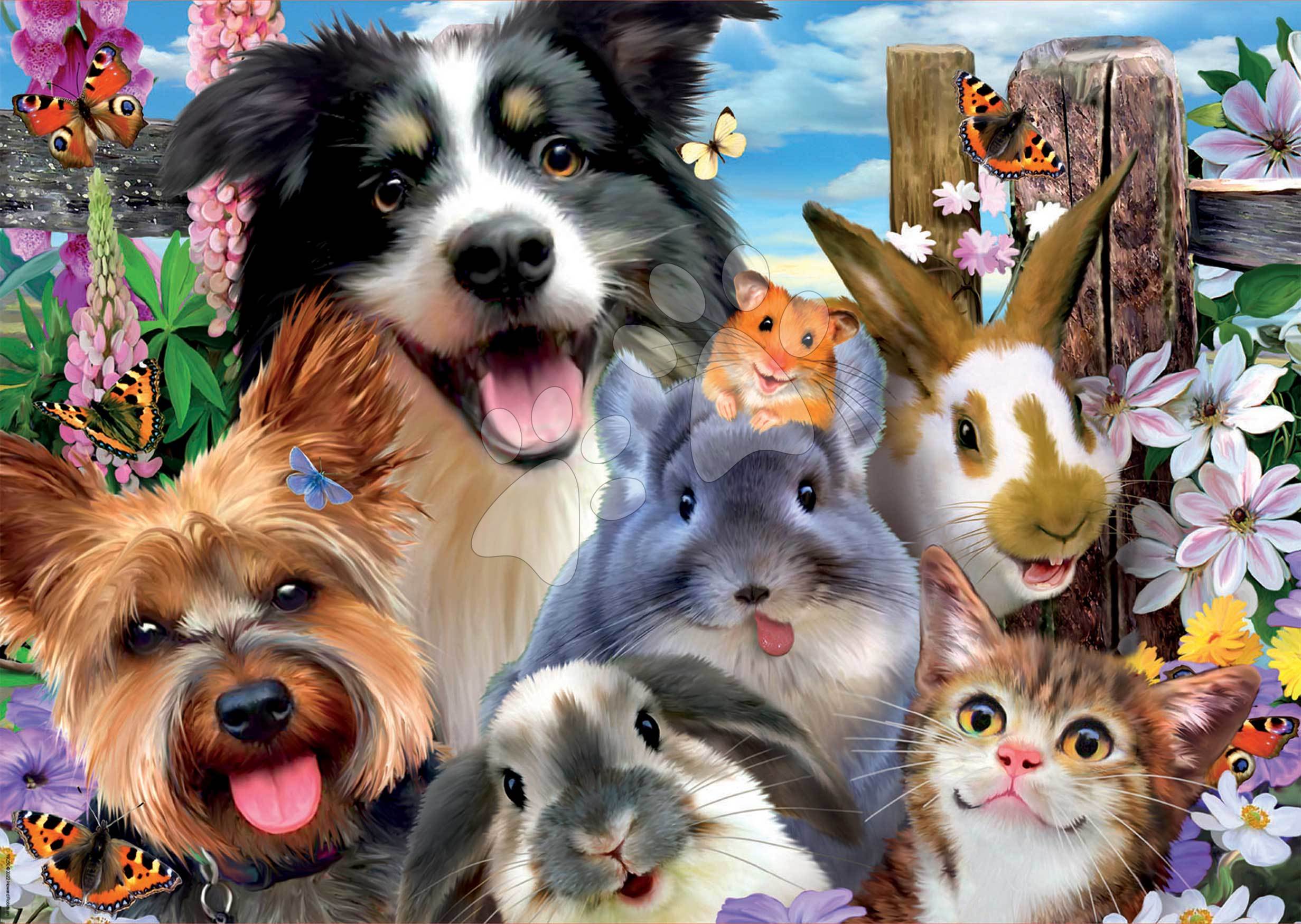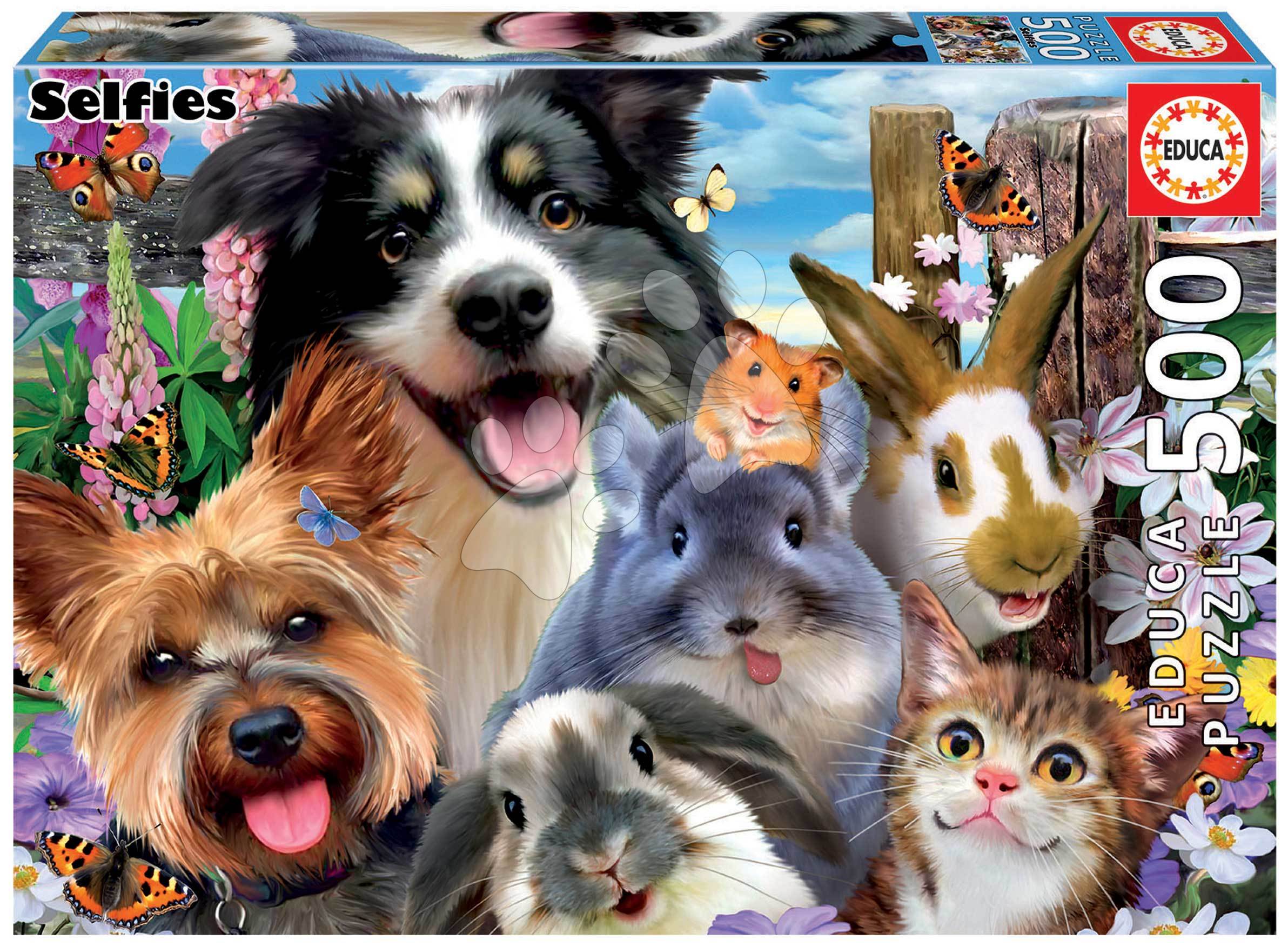 Objevujte stylové dětské puzzle Educa. Puzzle Yard Buddies Selfie s 500 dílky a puzzle lepidlem nabídne dětem obrázek domácích zvířátek.