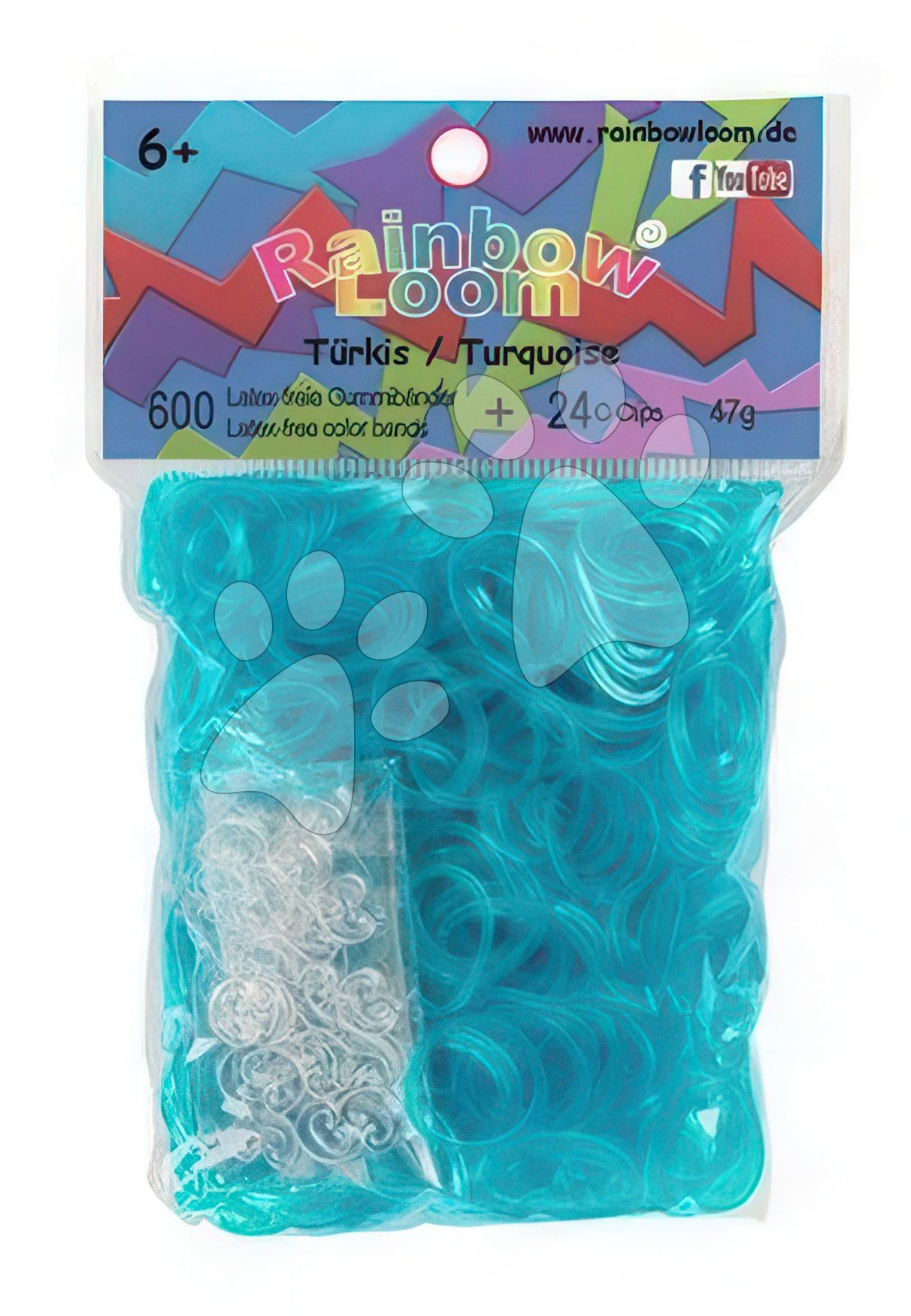 Hledáte kvalitní barevné gumičky na výrobu náramků? Rainbow Loom originální průsvitné gumičky v tyrkysové barvě potěší všechny děti, které rády pletou gumičkový náramky.