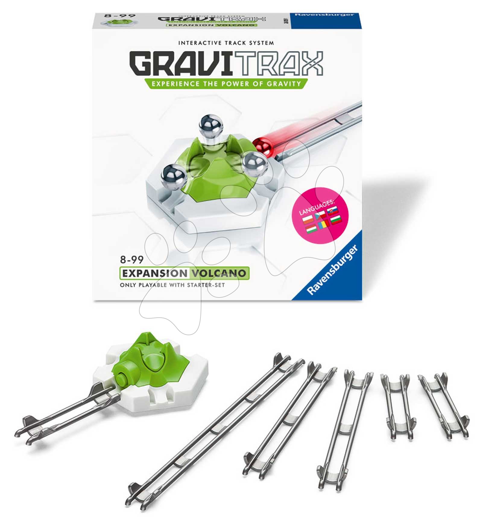 originální rozšíření a doplňky ke kuličkovým drahám GraviTrax! Rozšíření pro kuličkové dráhy Sopka simuluje výbuch sopky a vymrštit do dráhy až 3 kuličky v různých směrech.