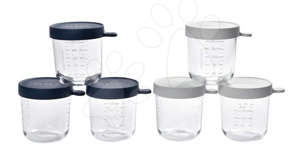 Sada dóz na jídlo 250 ml Beaba 6 kusů modrá a šedá z kvalitního skla od 4 měsíců