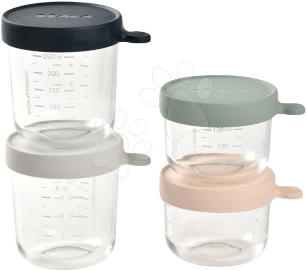 Set 4 dózy na jídlo Beaba z kvalitního skla (1*150 ml růžová/1*150 ml eukalyptus/1*250 ml šedá/ 1*250 ml tmavě modrá)