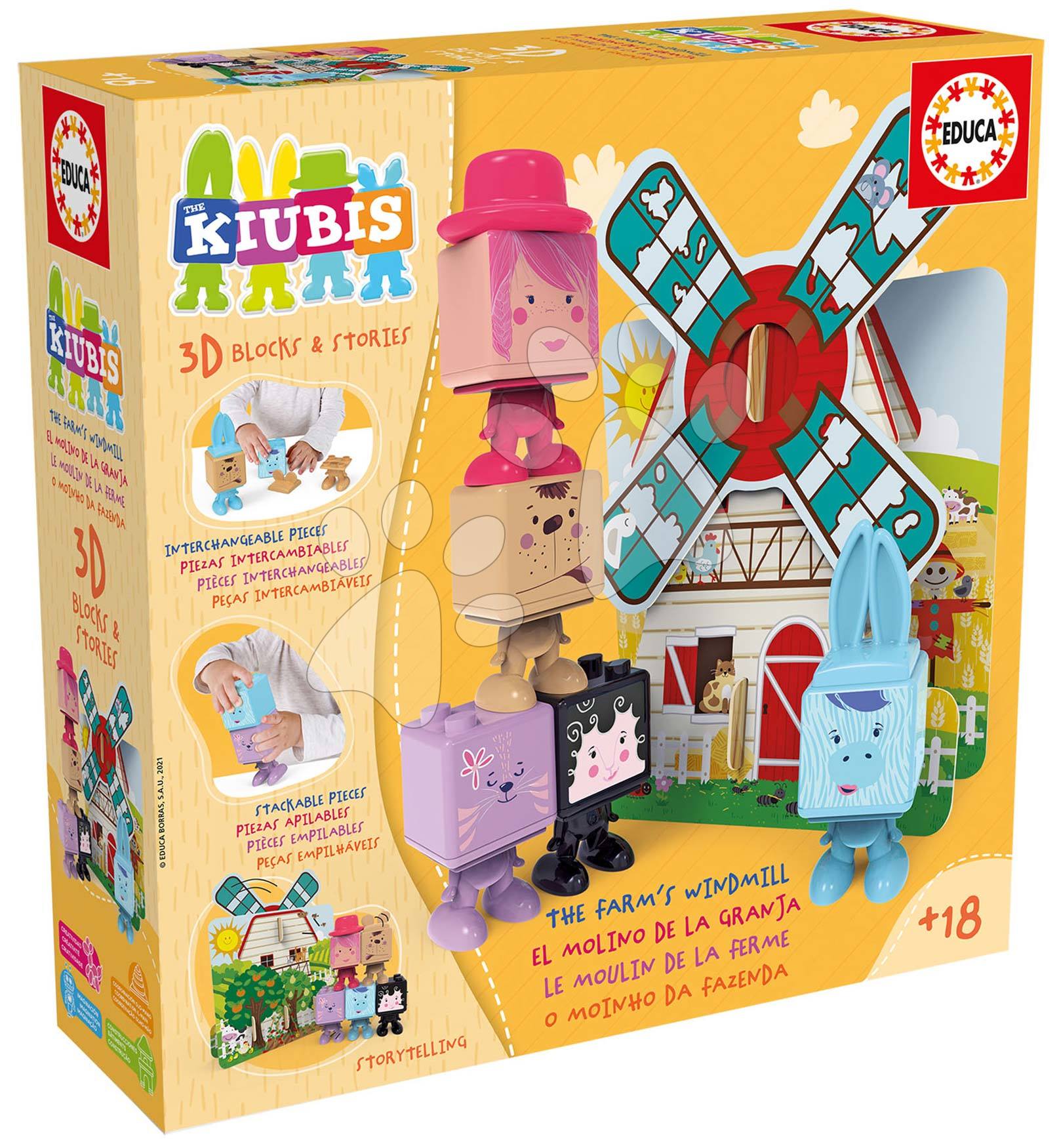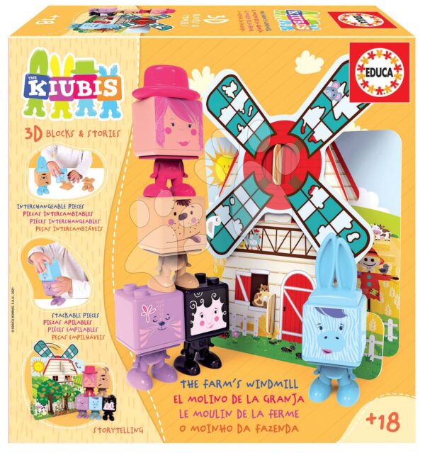 Skládačka Kiubis 3D Blocks & Stories The Farm´s Windmill Educa 5 figurek a větrný mlýn od 24 měsíců
