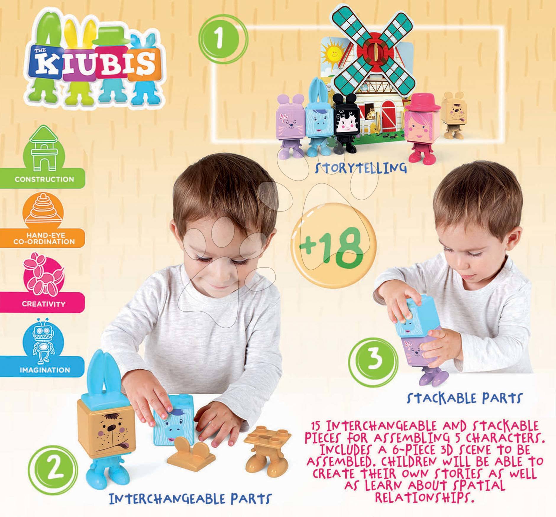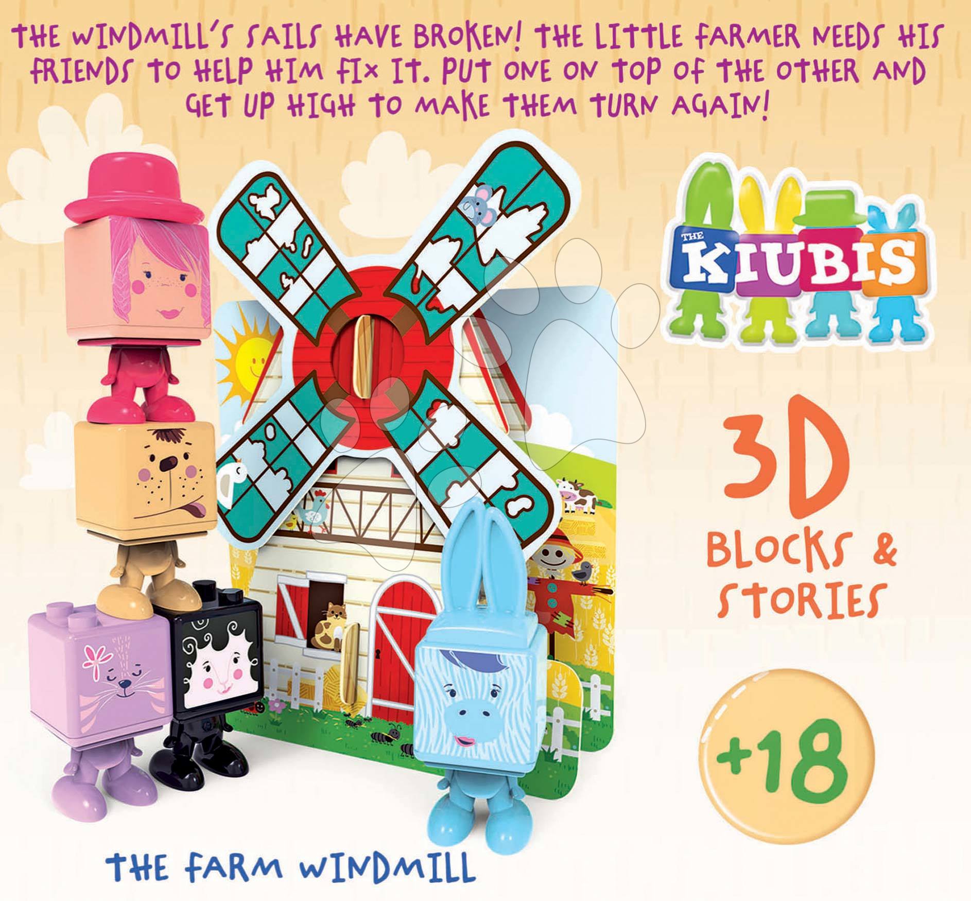 Oblíbené skládačky a figurky pro děti od 2 let. Skládačka Kiubis 3D Blocks & Stories s 5 figurkami a větrným mlýnem rozvíjí dětskou fantazii a představivost.
