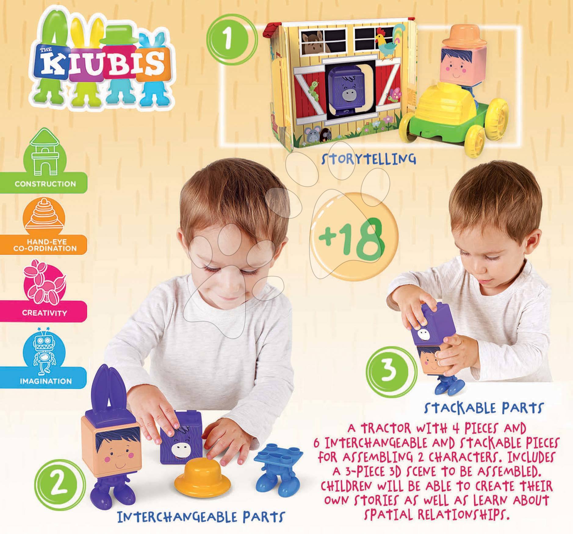 Kvalitní skládačky Educa potěší děti od 2 let. Skládačka Kiubis 3D se 2 figurkami, traktorem a stájí všestranně rozvíjí chlapce a dívky.