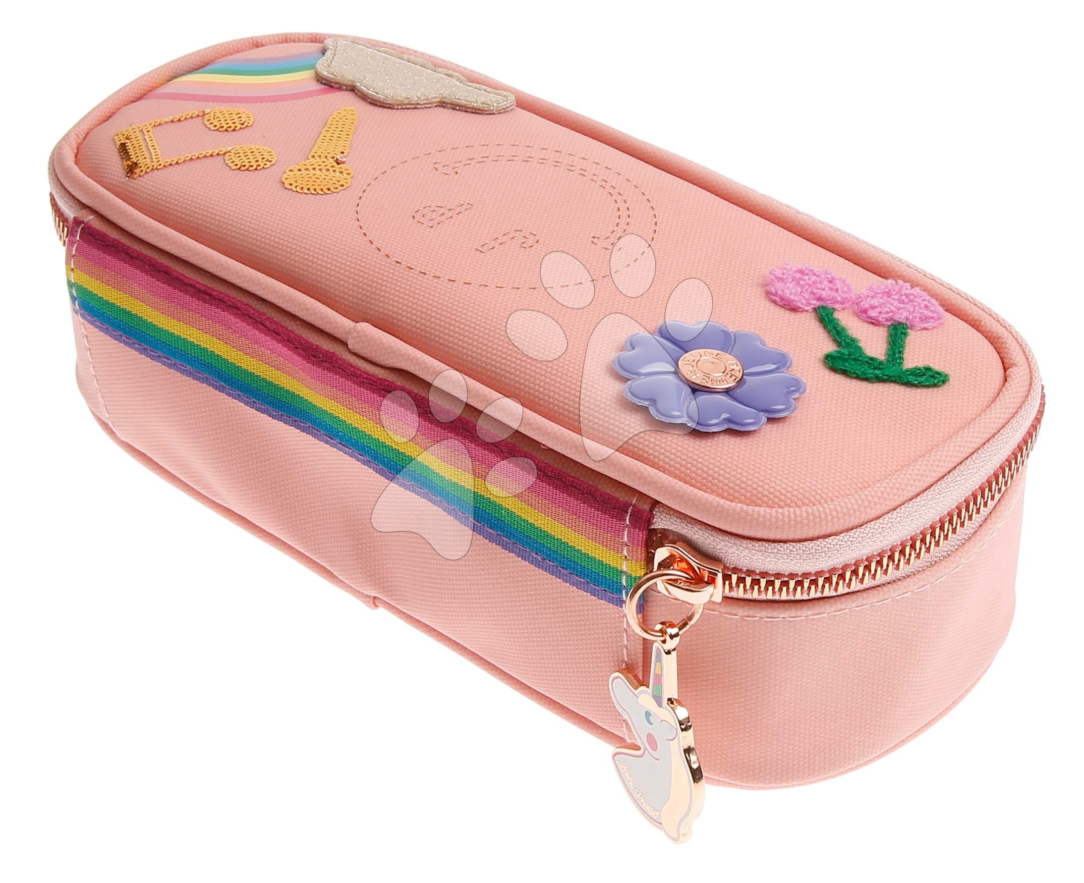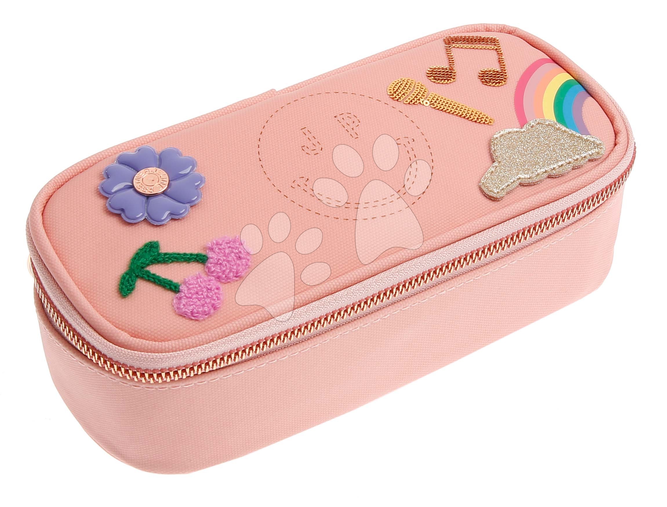 Hledáte penál, který potěší všechny dívky? luxusní penál Jeune Premier má růžovou barvu a hravé nášivky.