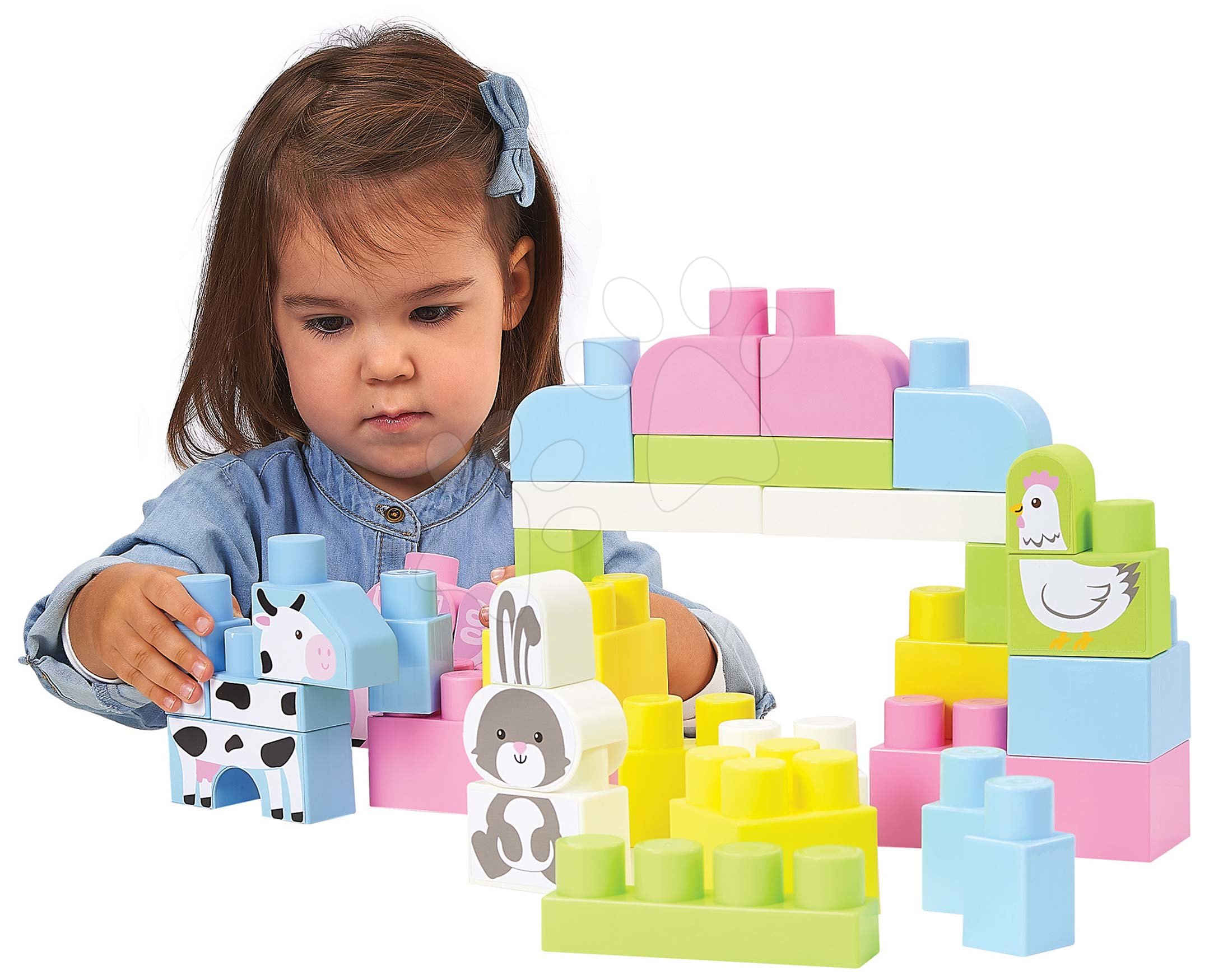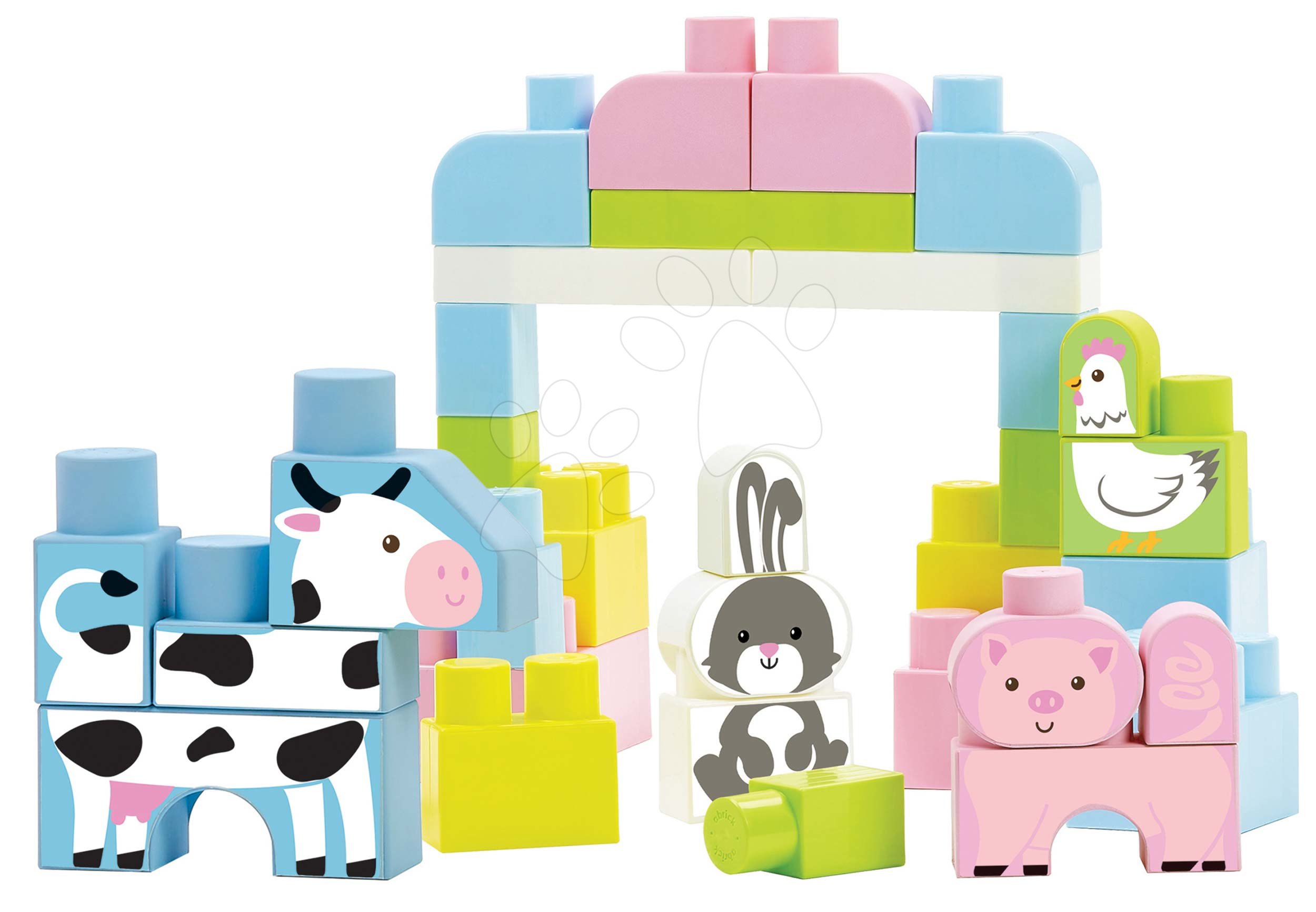 Stavebnice v dóze se zvířátky Farm Animals Barrel Les Maxi Abrick Écoiffier růžová s 50 kostkami od 12 měsíců