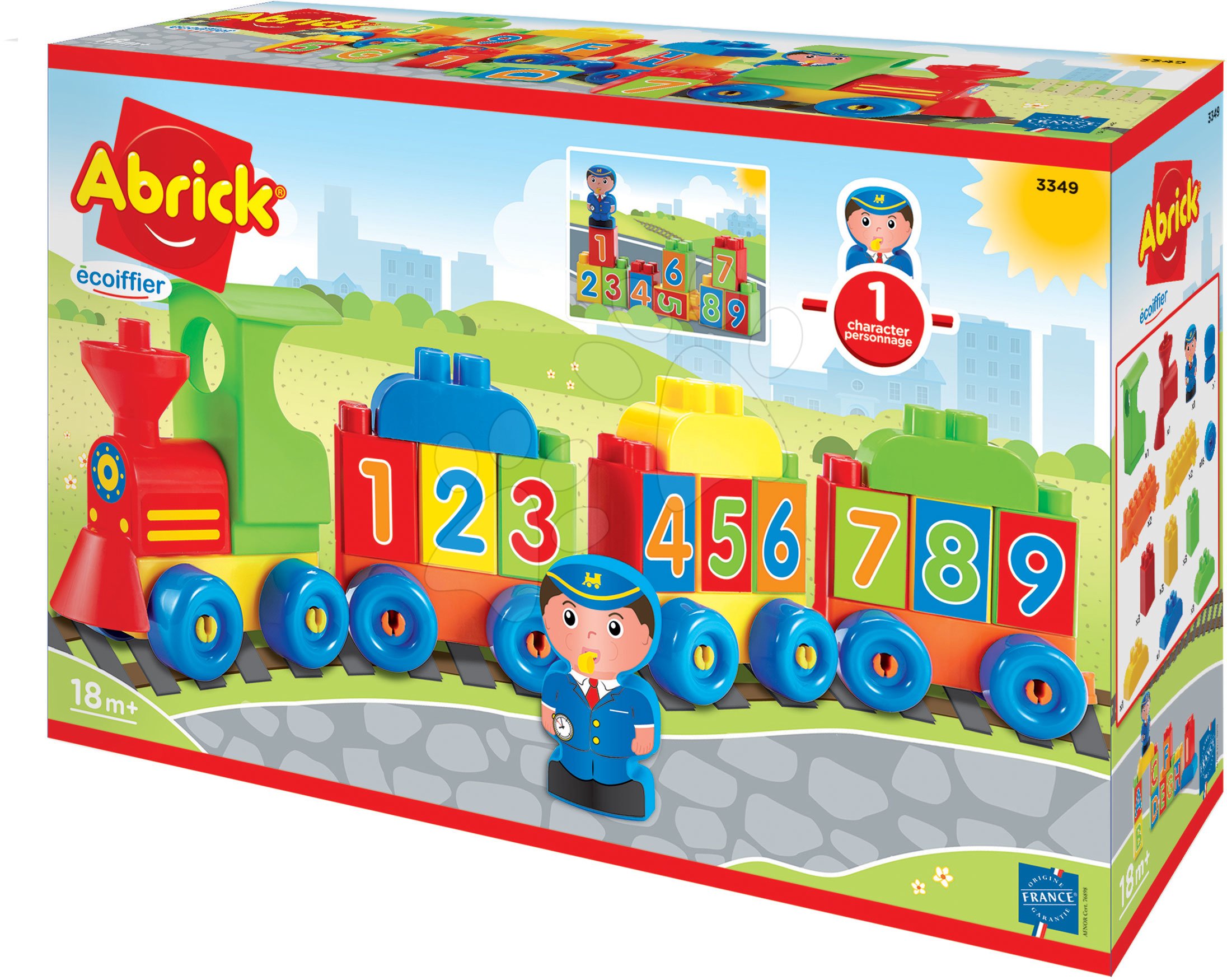 Stavebnice Vláček s čísly Abrick Écoiffier se strojvedoucím 45 cm dlouhý od 18 měsíců