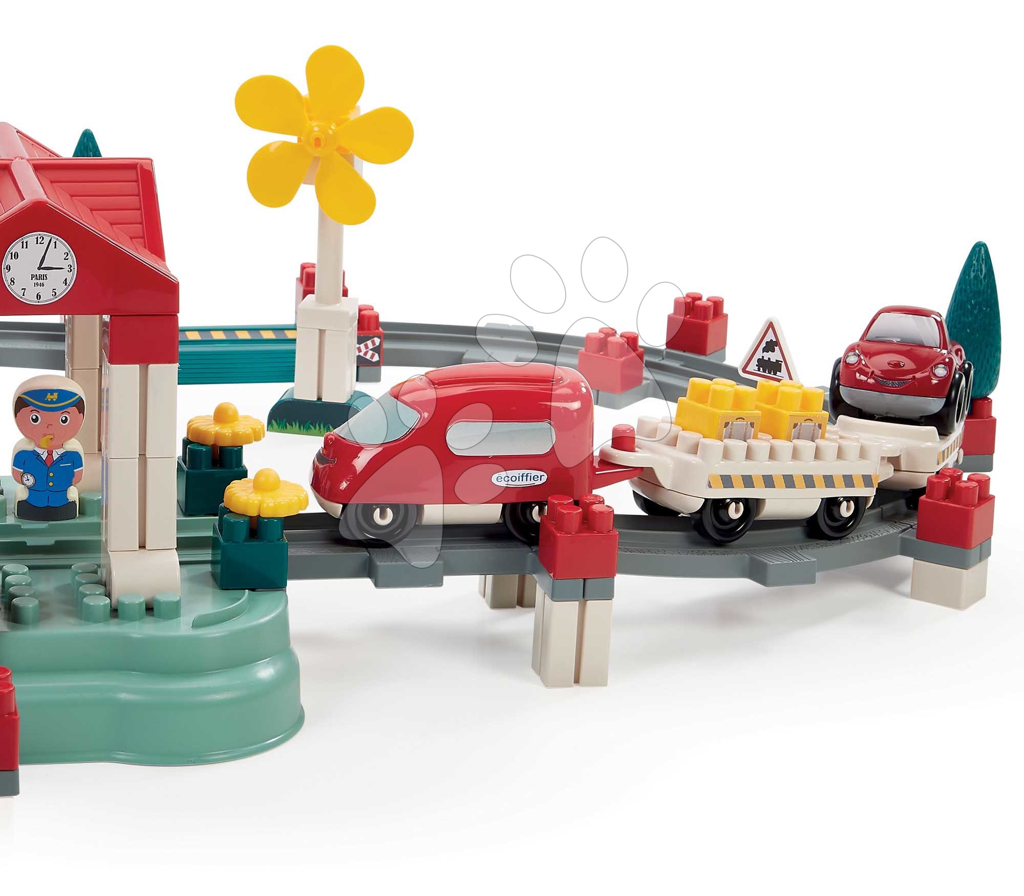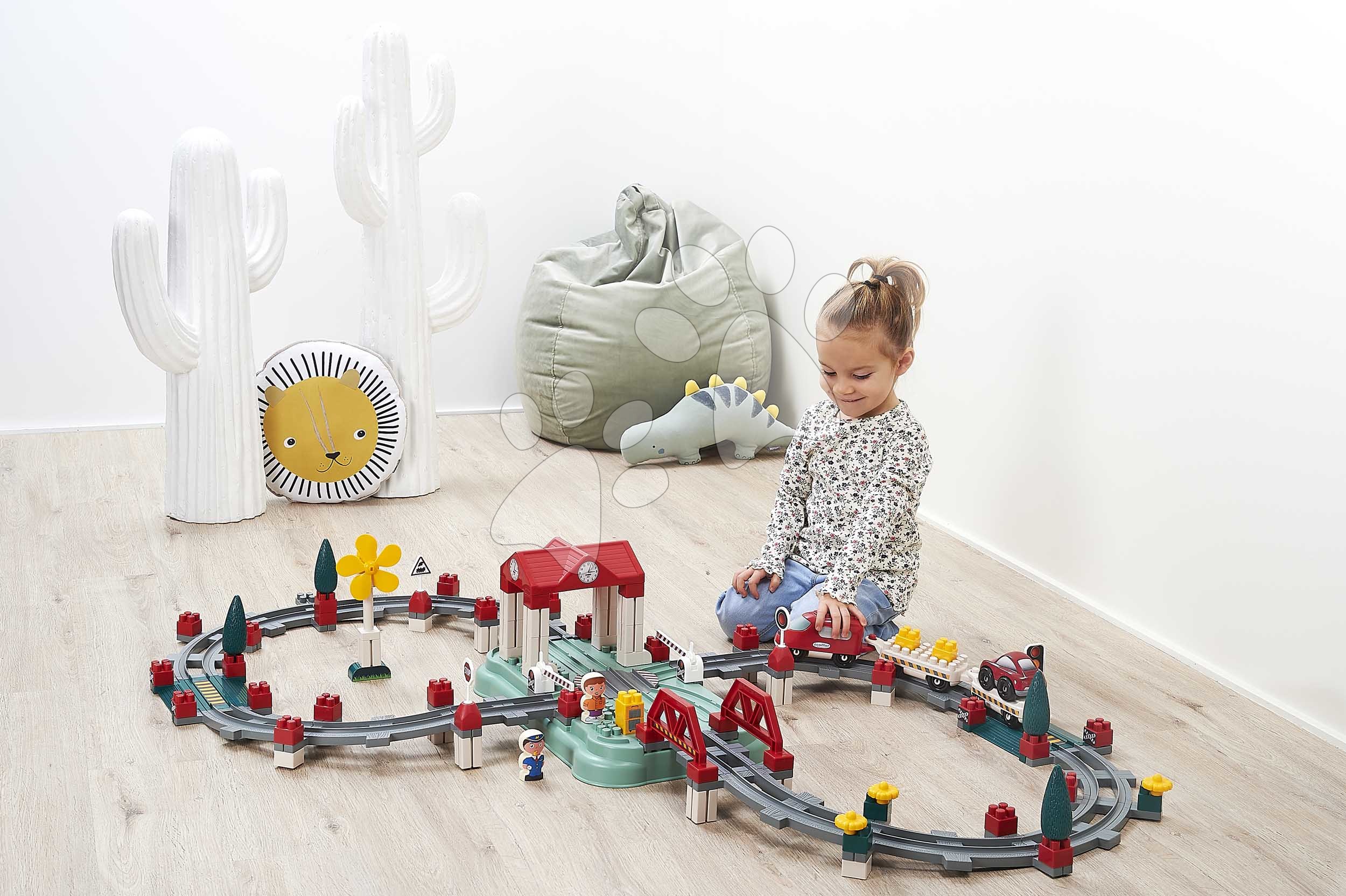 Stavebnice vláček s kolejnicemi v dóze Abrick Écoiffier 2 figurky a 2 vozidla 140 dílů od 18 měsíců
