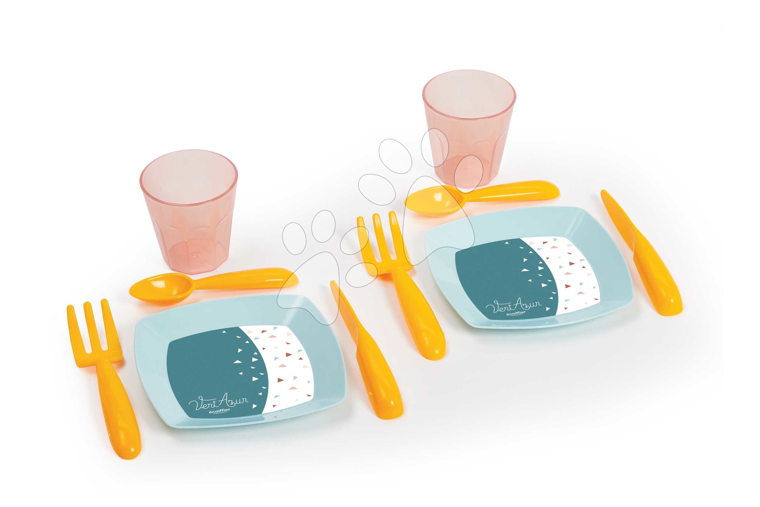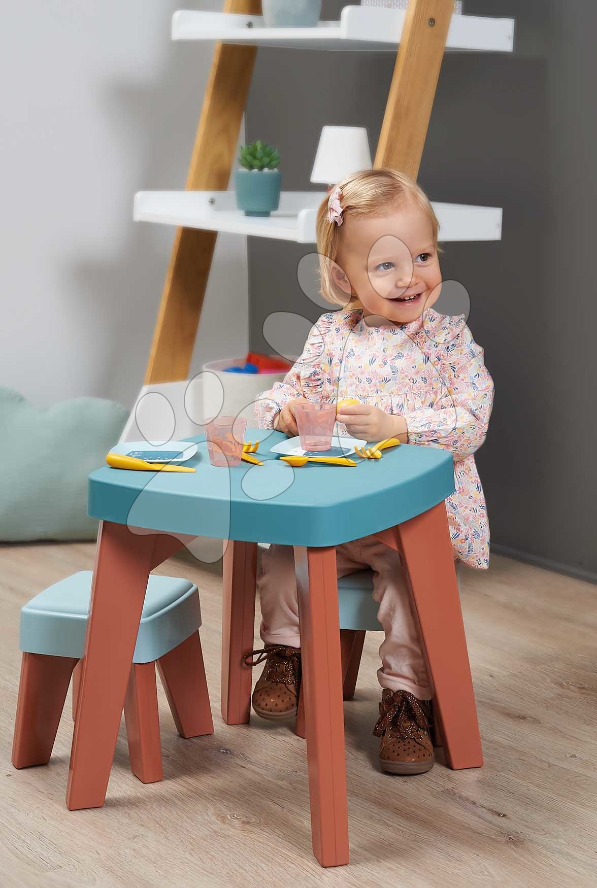 Stůl se dvěma židlemi Dinning Table Vert Azur Écoiffier s jídelní soupravou 13 doplňků od 18 měsíců