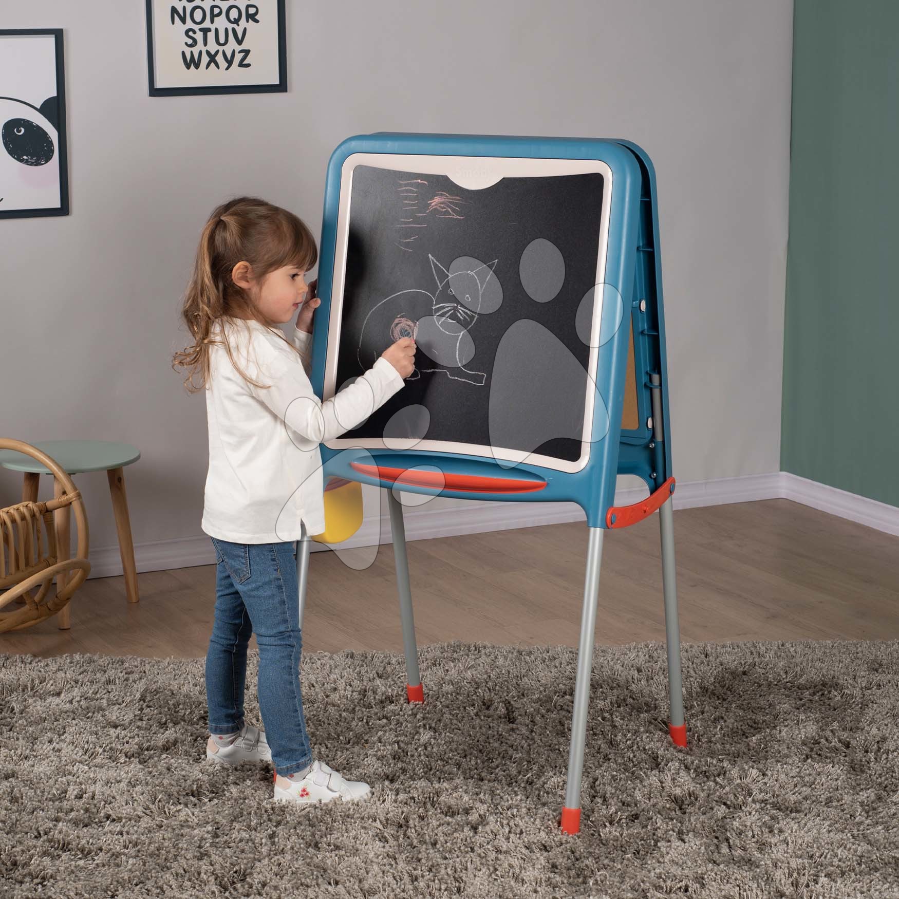 Potěšte své děti stylovou tabulí na křídu a magnetky od francouzského výrobce Smoby. Oboustranná kovová tabule s 80 doplňky Metal Board je vhodná pro chlapce a dívky od 3 let.