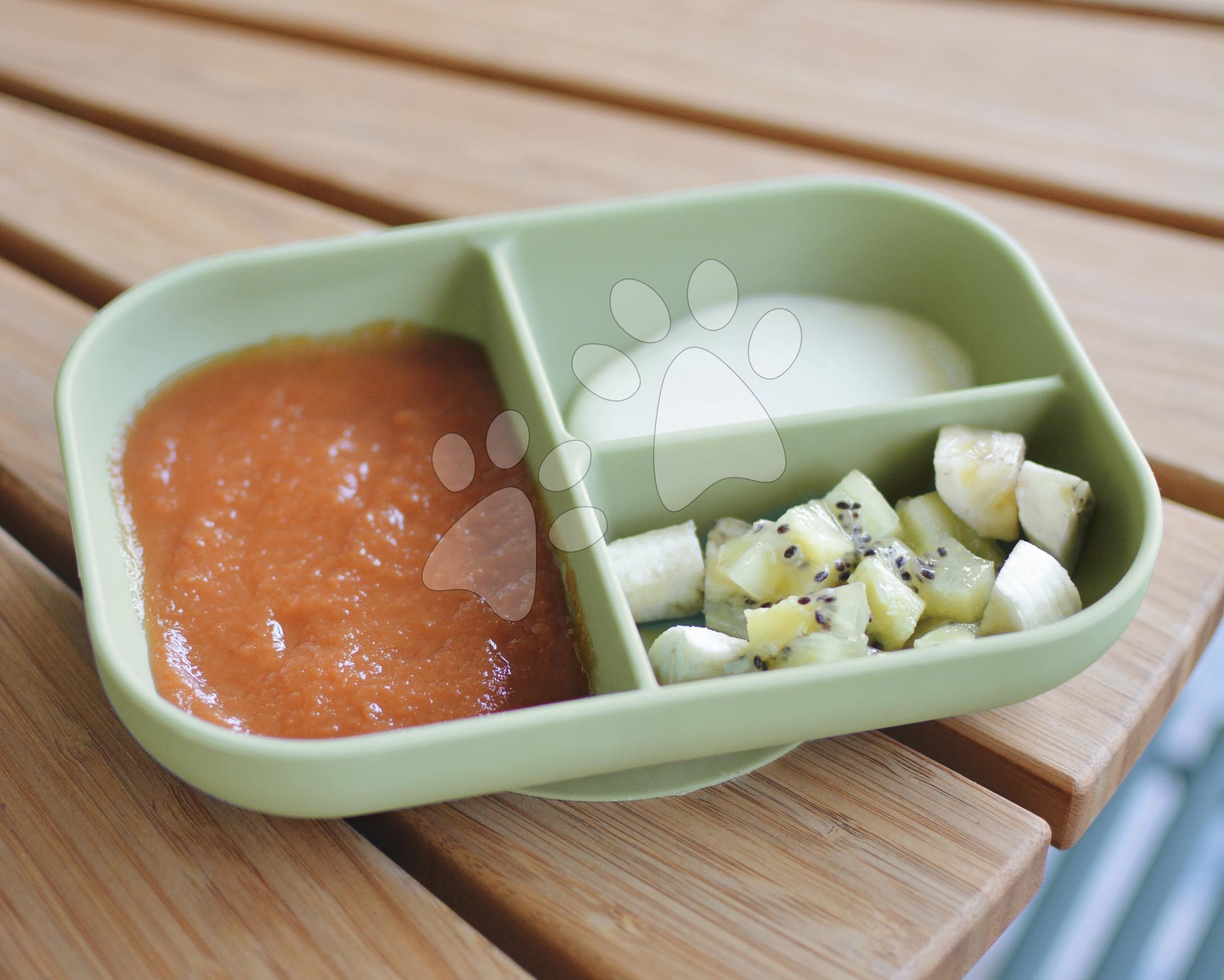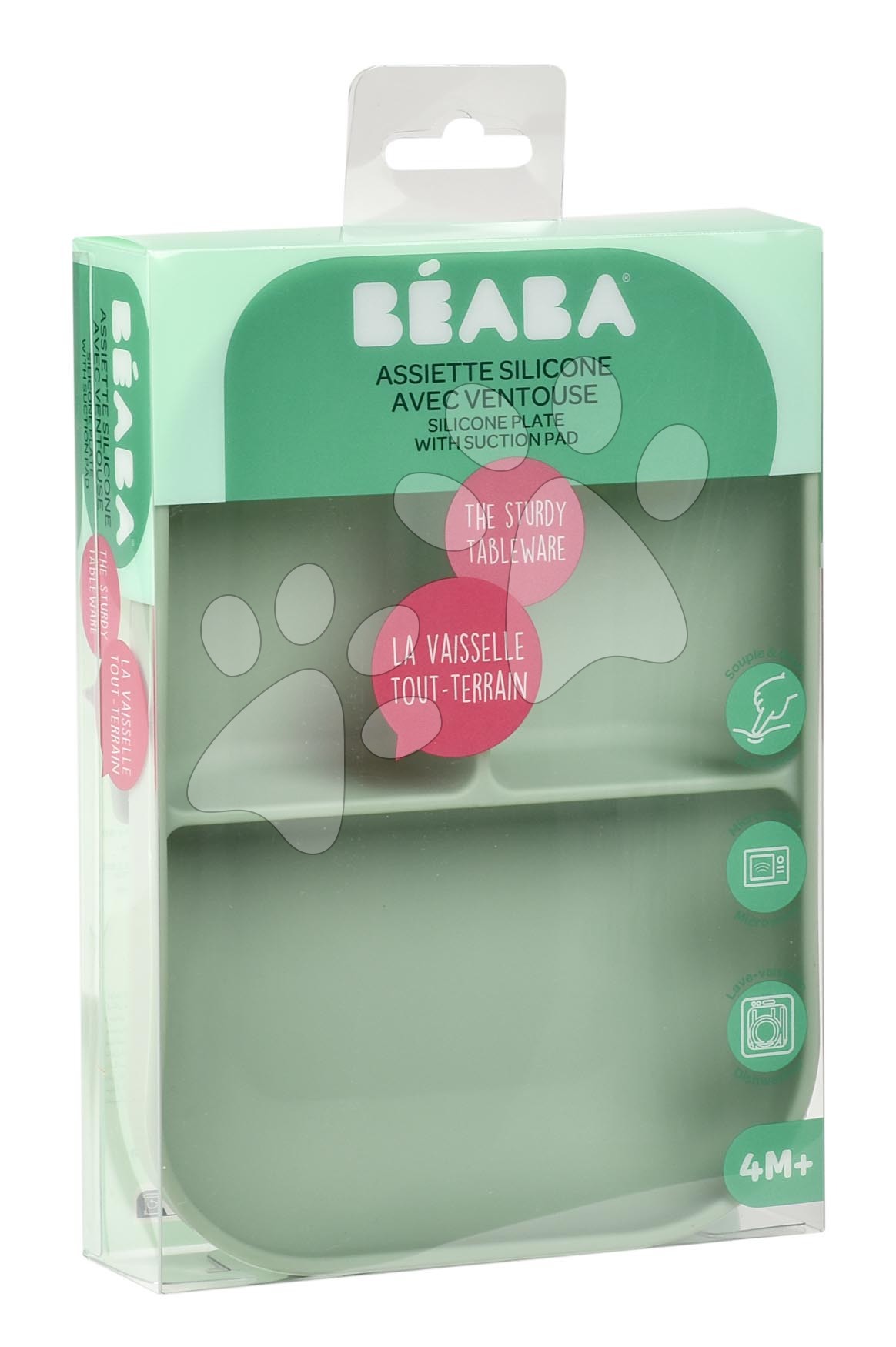 Talíř pro miminka Silicone Suction Plate Beaba Sage Green ze silikonu rozdělen zelený od 4 měsíců