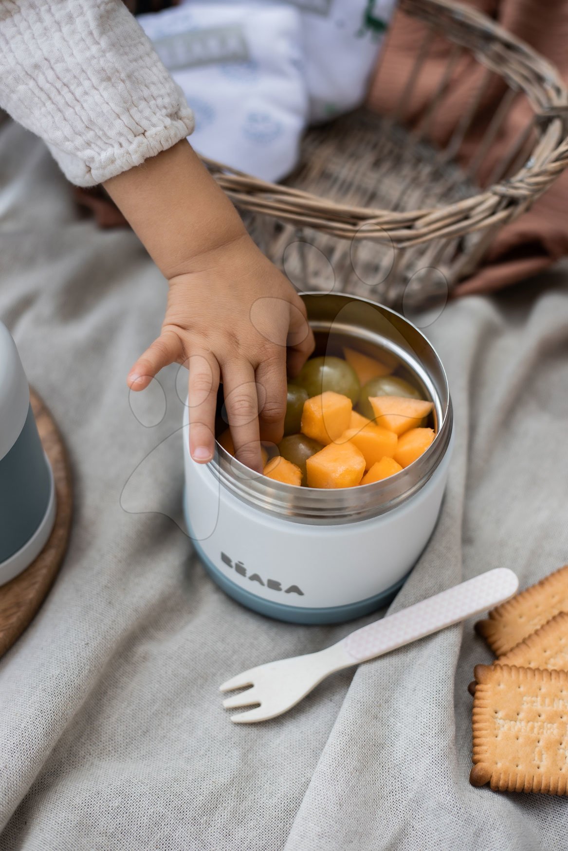 Udržte jídlo pro děti teplé a čerstvé i na výletě. Termoska se širokým otvorem Beaba má objem 500 ml a je z nerezavějící oceli.