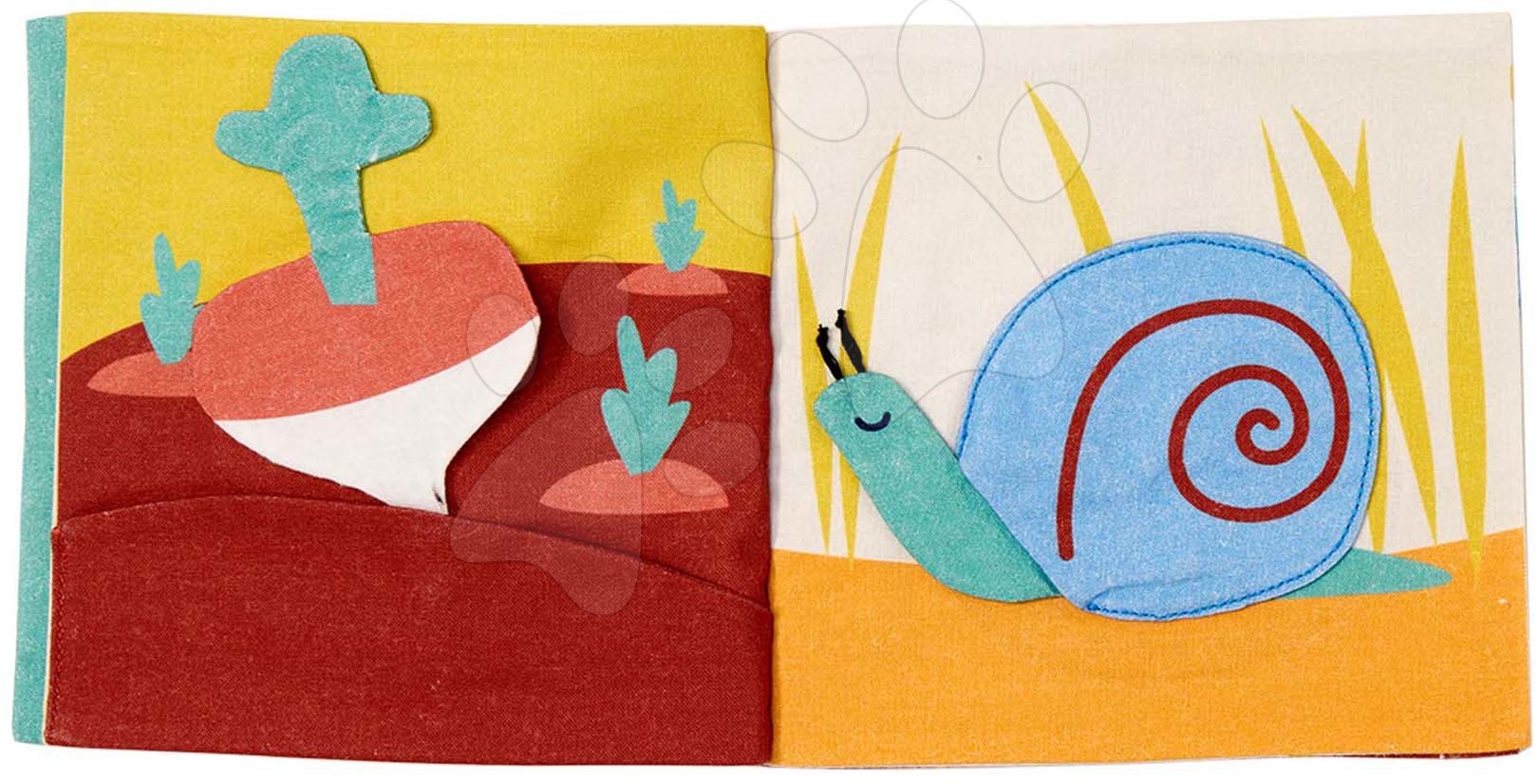 Textilní knížka My Garden Activity Book ThreadBear zvířátka v zahradě 100% jemná bavlna od 0 měs