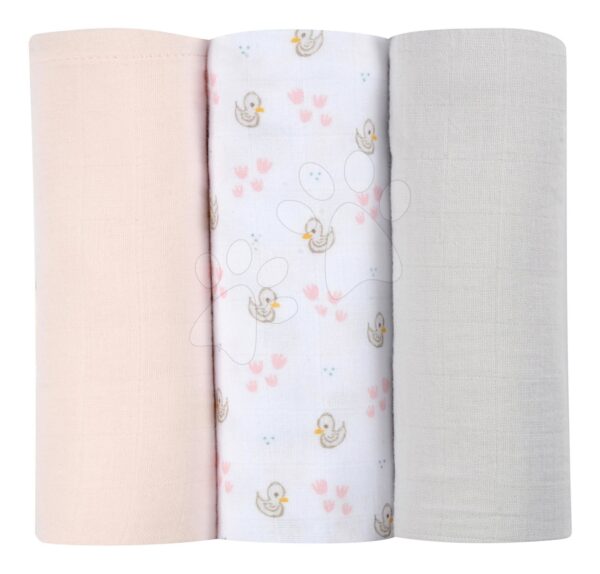 Textilní pleny z bavlněného mušelínu Cotton Muslin Cloths Beaba Cygne sada 3 kusů 70*70 cm od 0 měsíců růžové