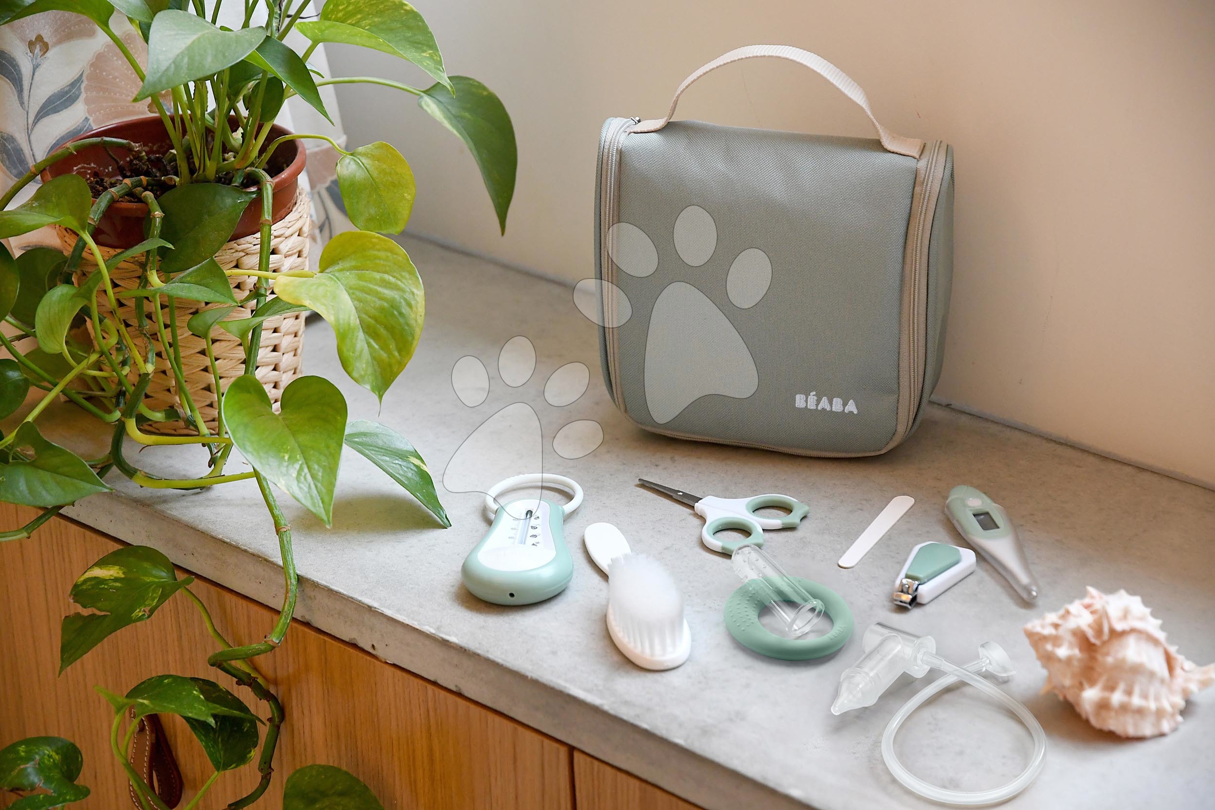 Toaletní potřeby pro miminko Hanging Toiletry Pouch Beaba Sage Green v závěsné taštičce s 9 doplňky zelené od 0 měsíců