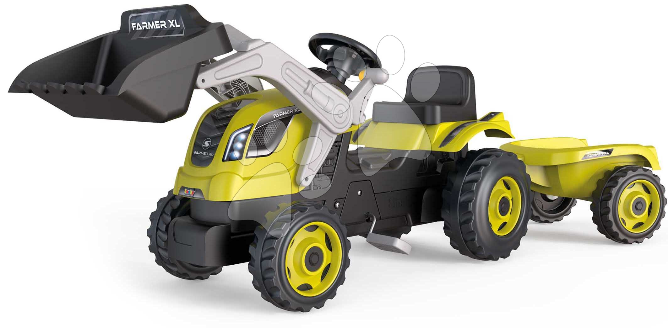 Traktor na šlapání s nakladačem a přívěs Farmer Max Green Tractor+Trailer Smoby zelený s polohovatelným sedadlem a se zvukem 169 cm