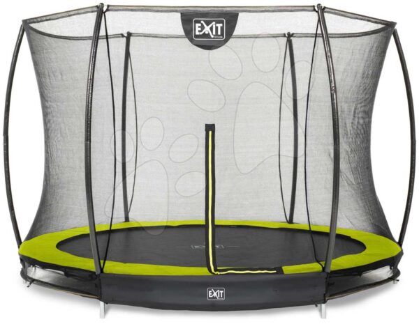 Prvotřídní trampolíny pro děti od 3 let. Zelená trampolína s ochrannou sítí Silhouette od Exit Toys o průměru 244 cm ozdobí každou zahradu.