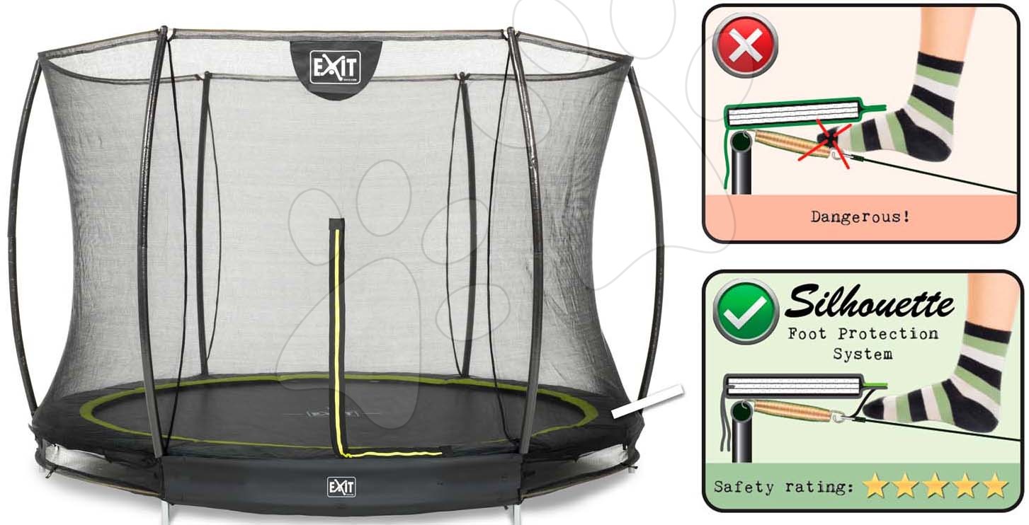 Trampolíny s ochrannou sítí od Exit Toys. Přízemní trampolína s ochrannou sítí Silhouette s pevným kovovým rámem má průměr 305 cm.