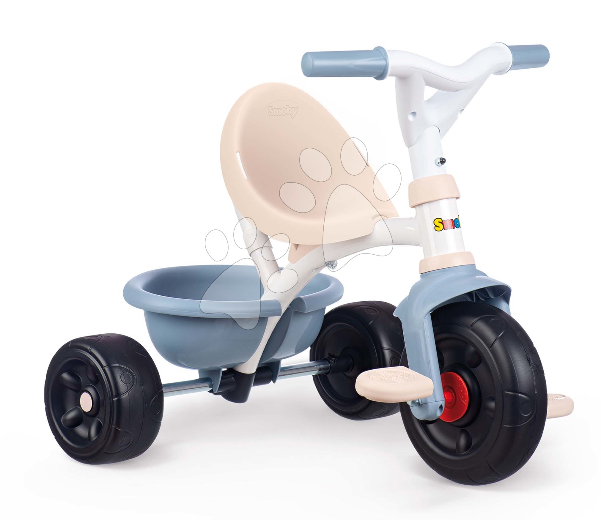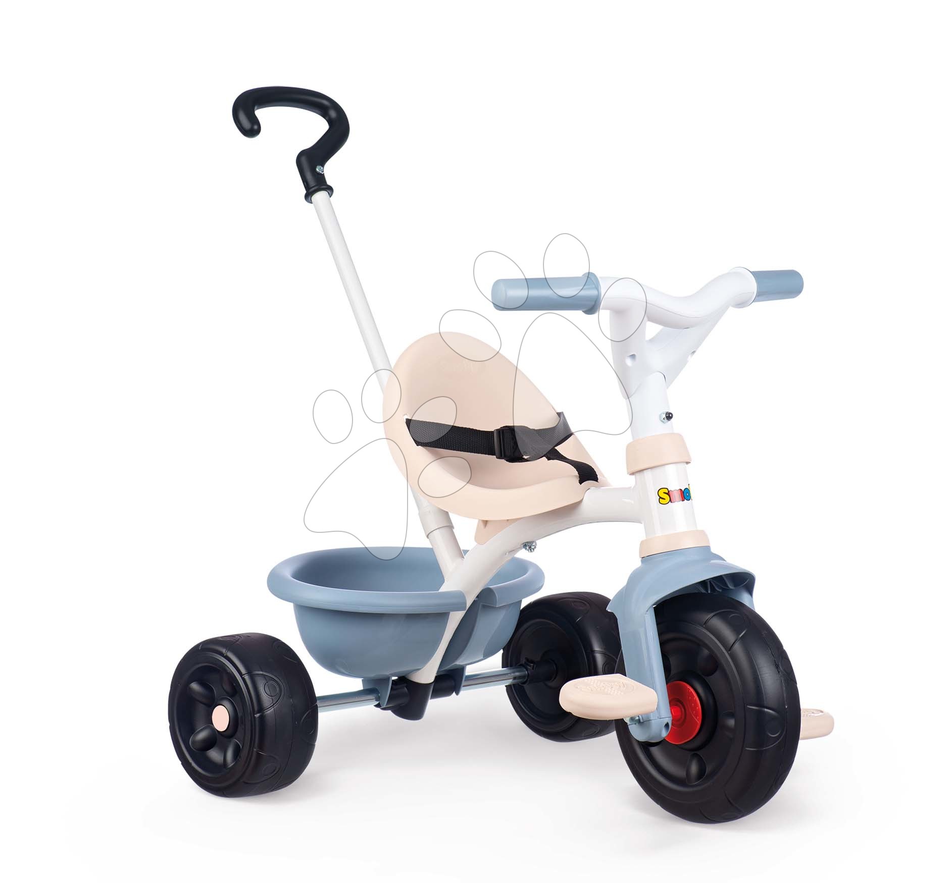 Špičkové dětské tříkolky s kovovým rámem od francouzské značky Smoby. modrá tříkolka Be Fun s výškou nastavitelnou vodicí tyčí a volnoběhem potěší děti od 15 měsíců.