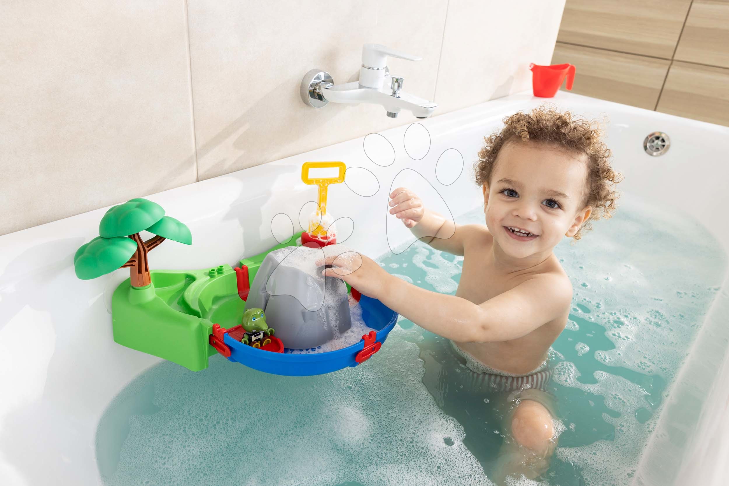 Moderní vodní dráhy pro děti od švédské značky aquaPlay. Vodní dráha do vany s funkční sopkou, figurkou krokodýla Svena ve člunu a vodní pumpou okouzlí chlapce a dívky od 18 měsíců.