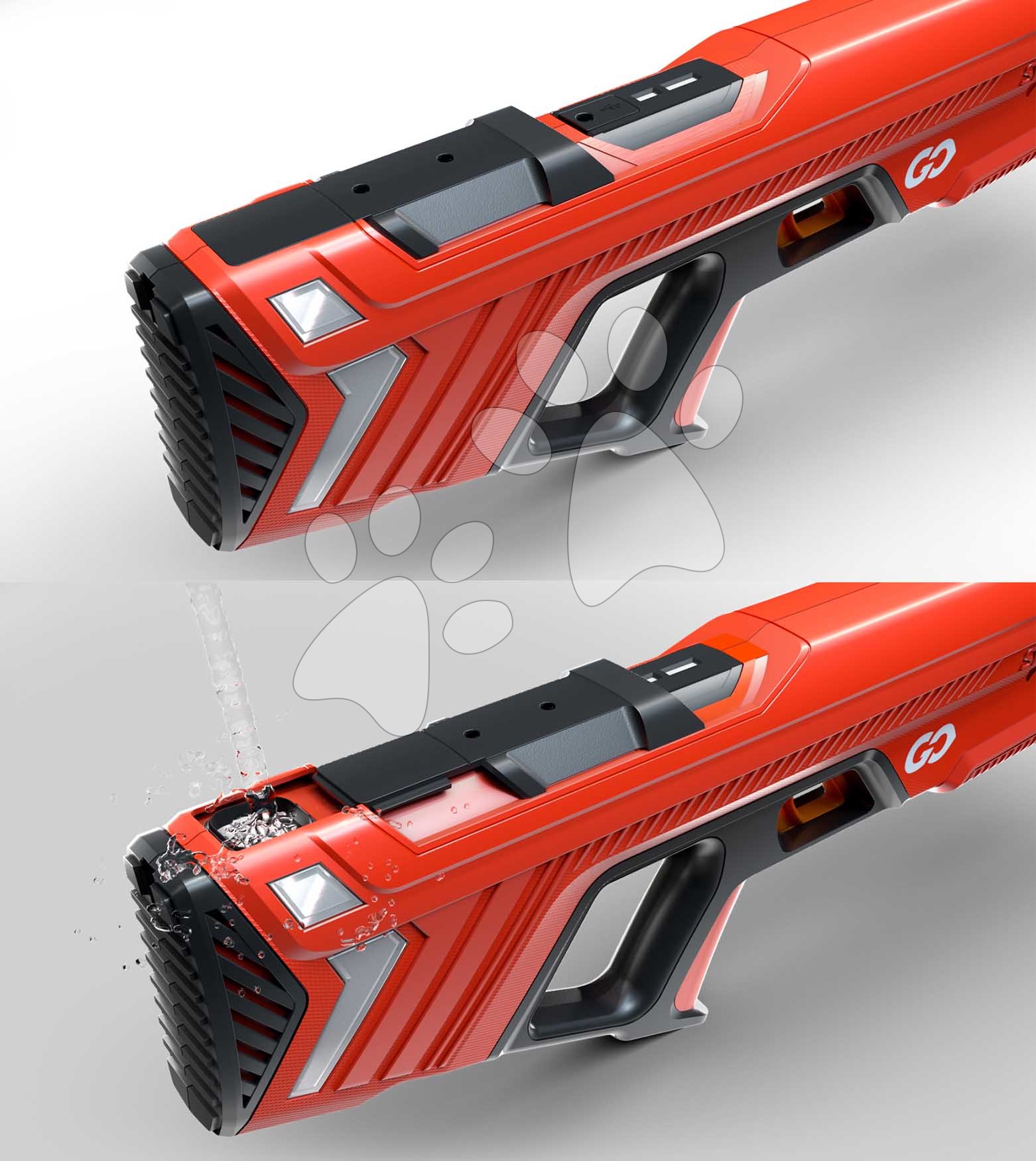 Vodní pistole s manuálním nabíjením vodou SpyraGO Red Spyra s elektronickým indikátorem stavu baterie a dostřelem 8 metrů červená od 8 let