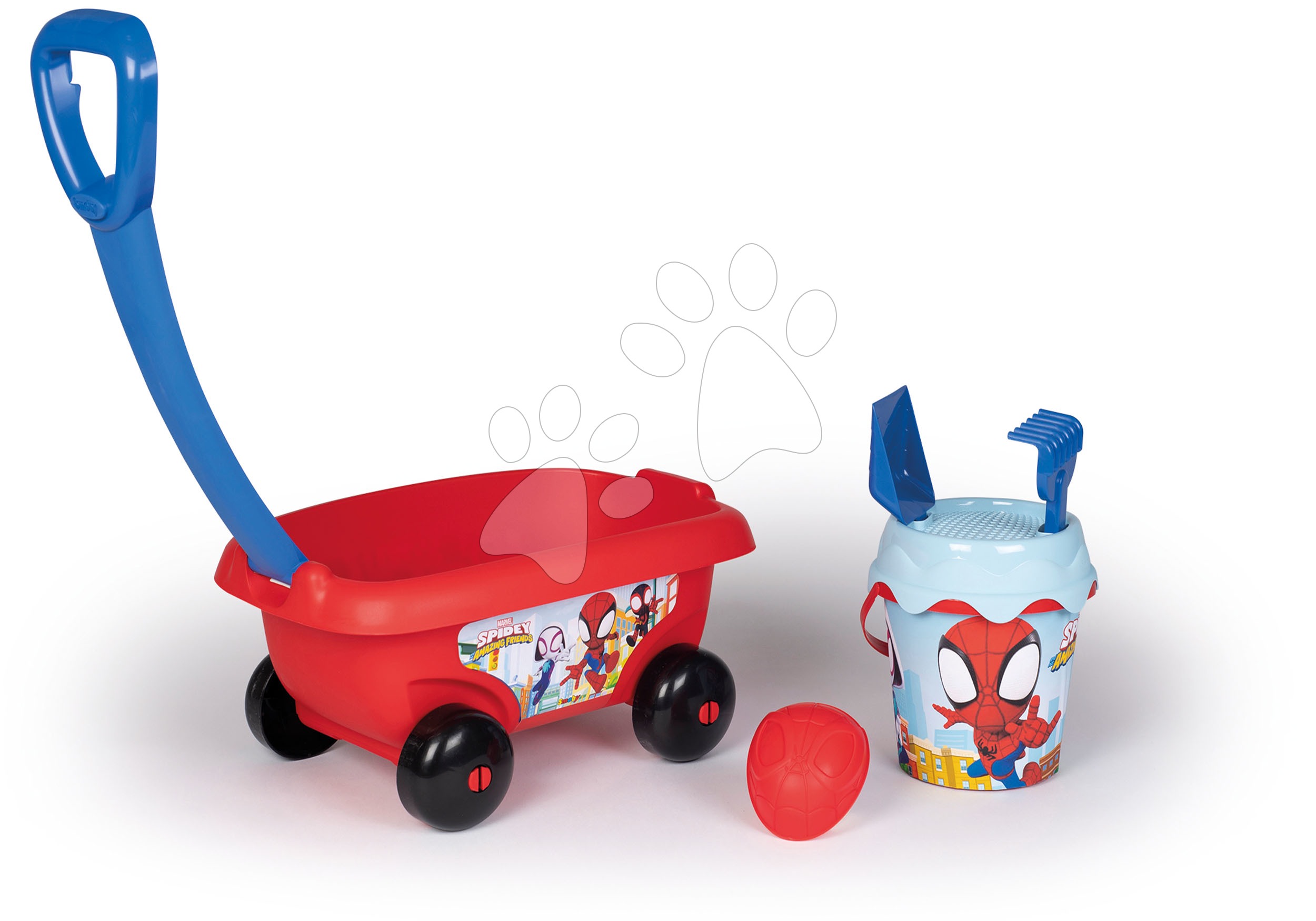 Vozík na tahání Spidey Spiderman Garnished Beach Cart Smoby s kbelík setem od 18 měsíců
