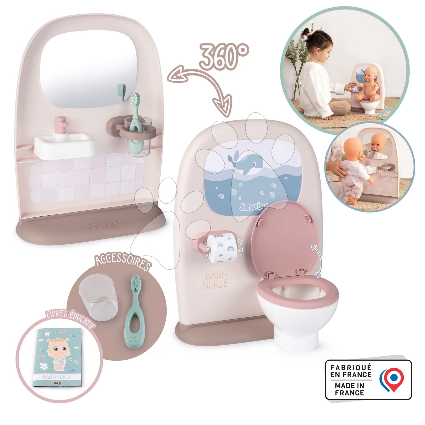 Záchod a koupelna pro panenky Toilets 2in1 Baby Nurse Smoby oboustranný s WC papírem a 3 doplňky k umyvadlu