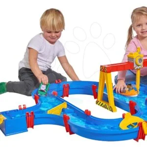 • Vodní dráha Container Port AquaPlay s pohyblivým kontejnerovým jeřábem s 2 figurkami a mlýnem