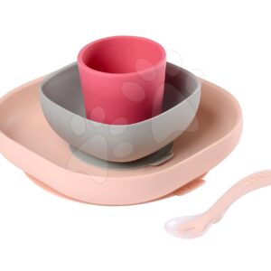• Jídelní souprava Beaba Silicone meal set ze silikonu 4dílná růžovo-béžovo-šedá pro miminka
